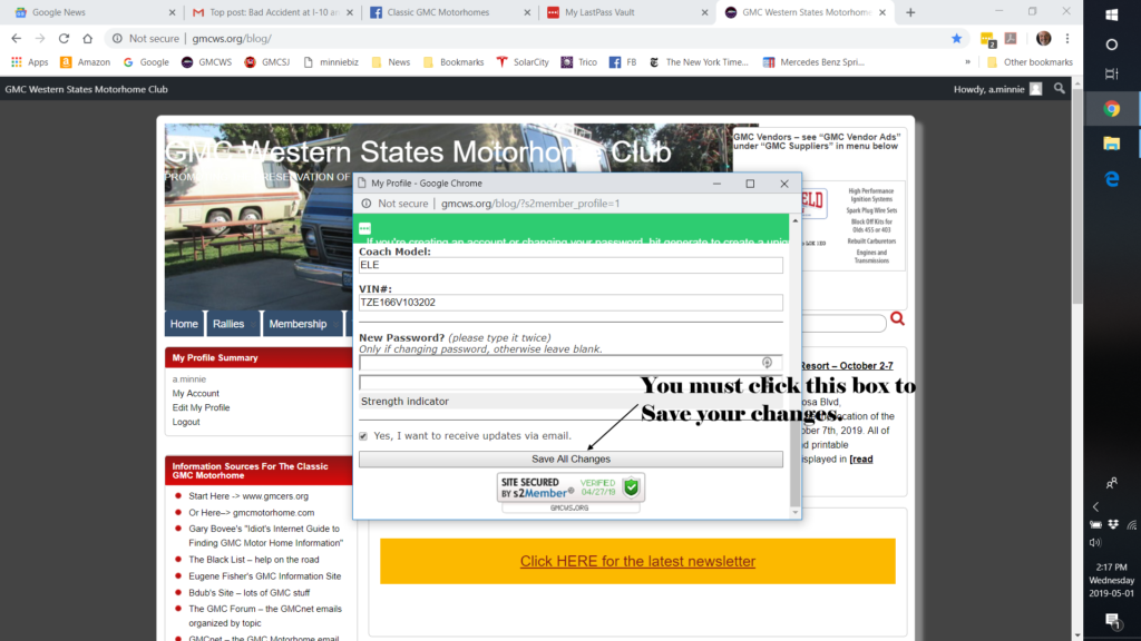 Step 5 is to save your changes - don't forget! Now you can log out - you are done!