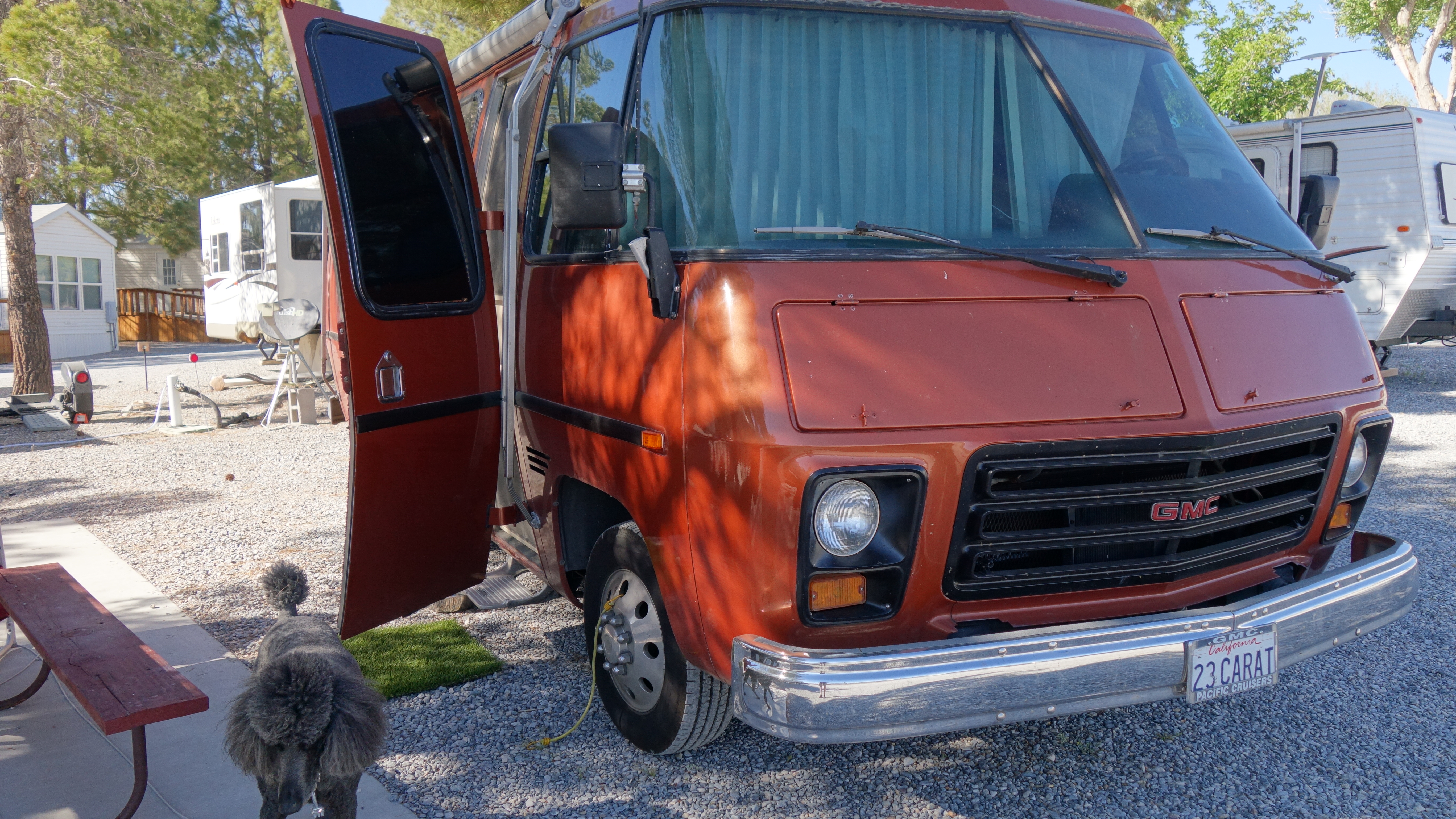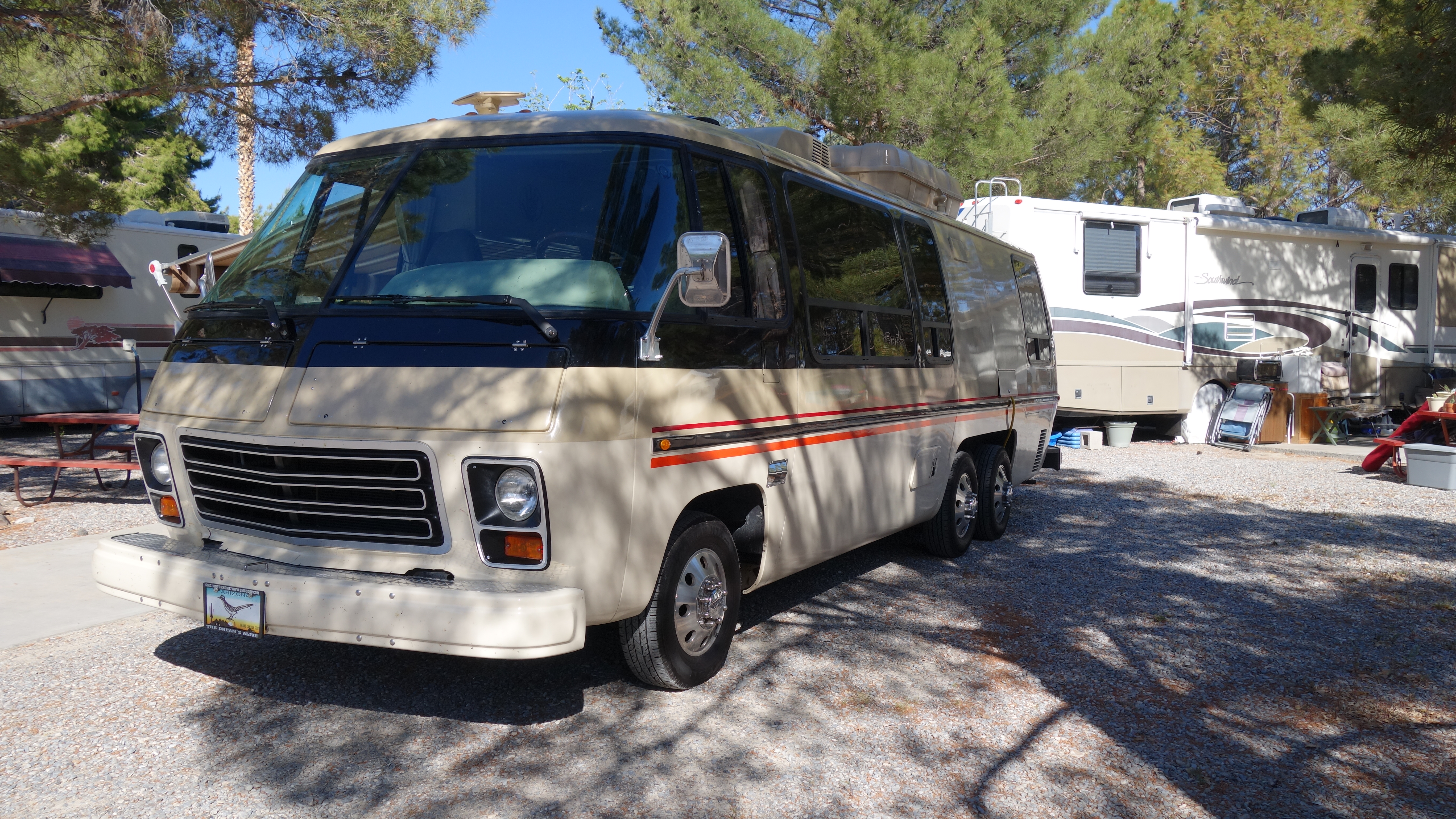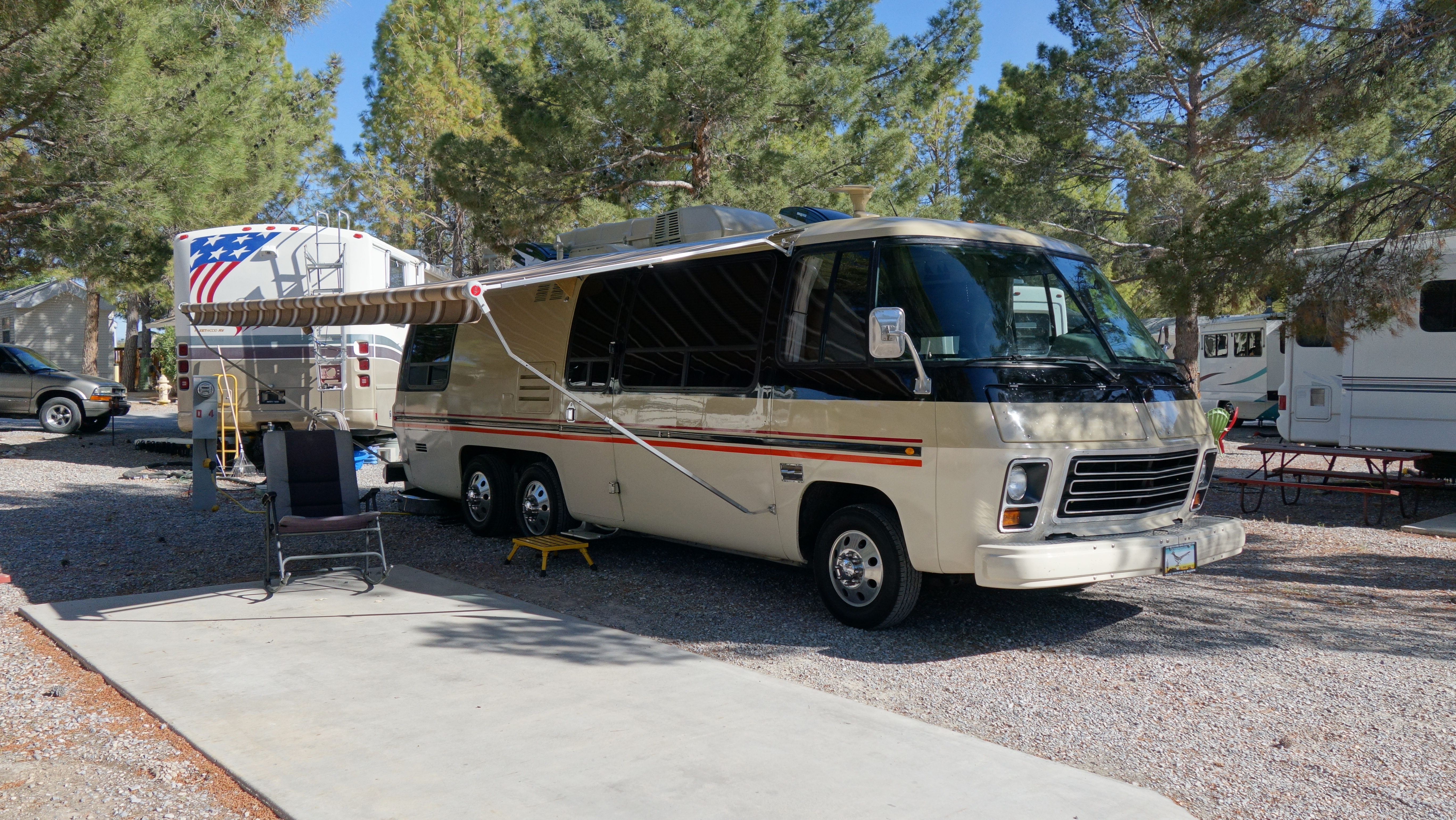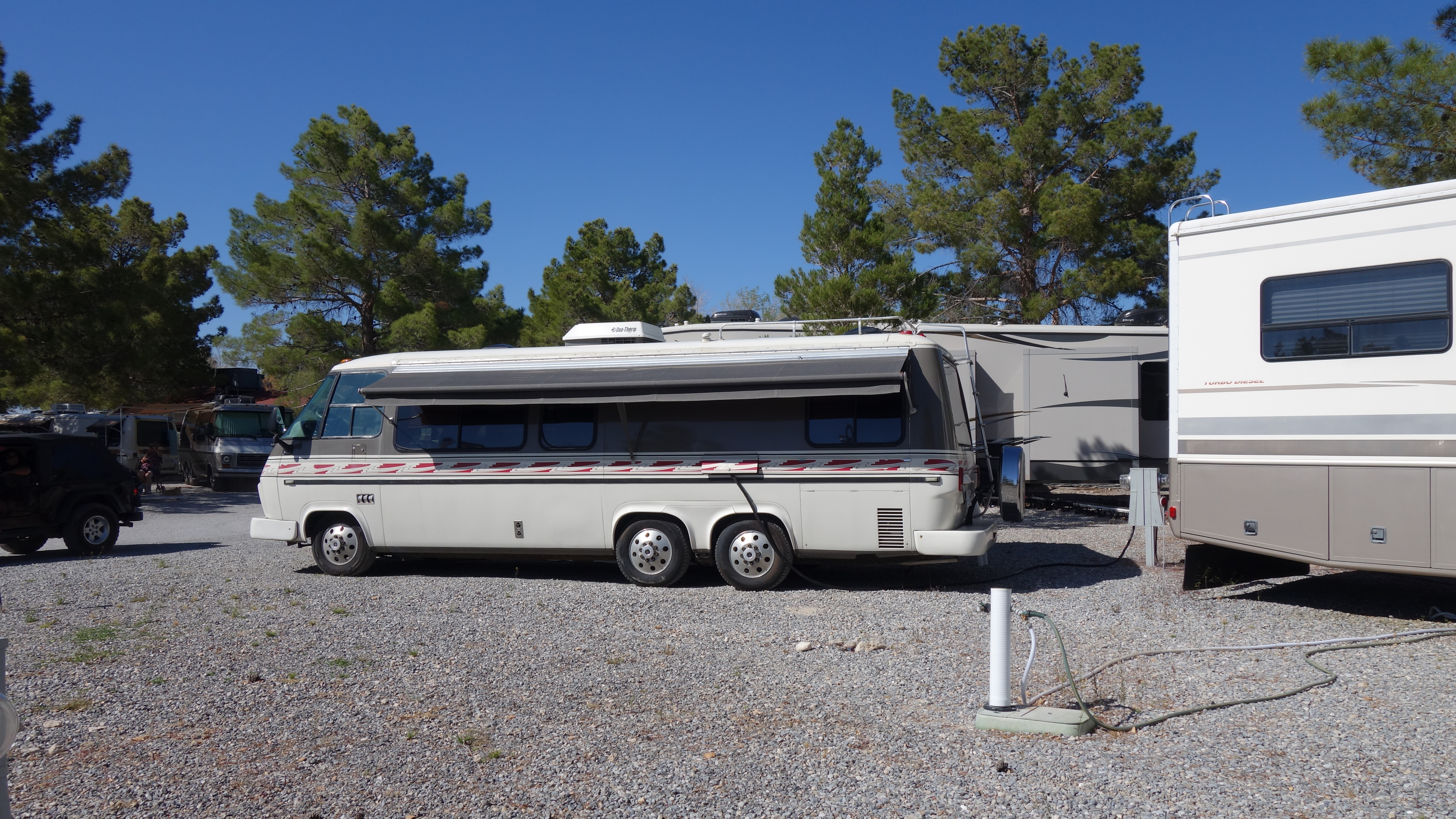 Daniel and Marjon Jacobs from The Netherlands attended the Pahrump rally. They were very interested in buying a Classic GMC Motorhome and so spent the first week of their 4-week US vacation with us. They have been to The States for 4-week periods before and have visited many places in their rented RVs. They were thinking of possibly buying a GMC and leaving it here between trips but I think they have changed their minds and will just admire the GMC from afar.