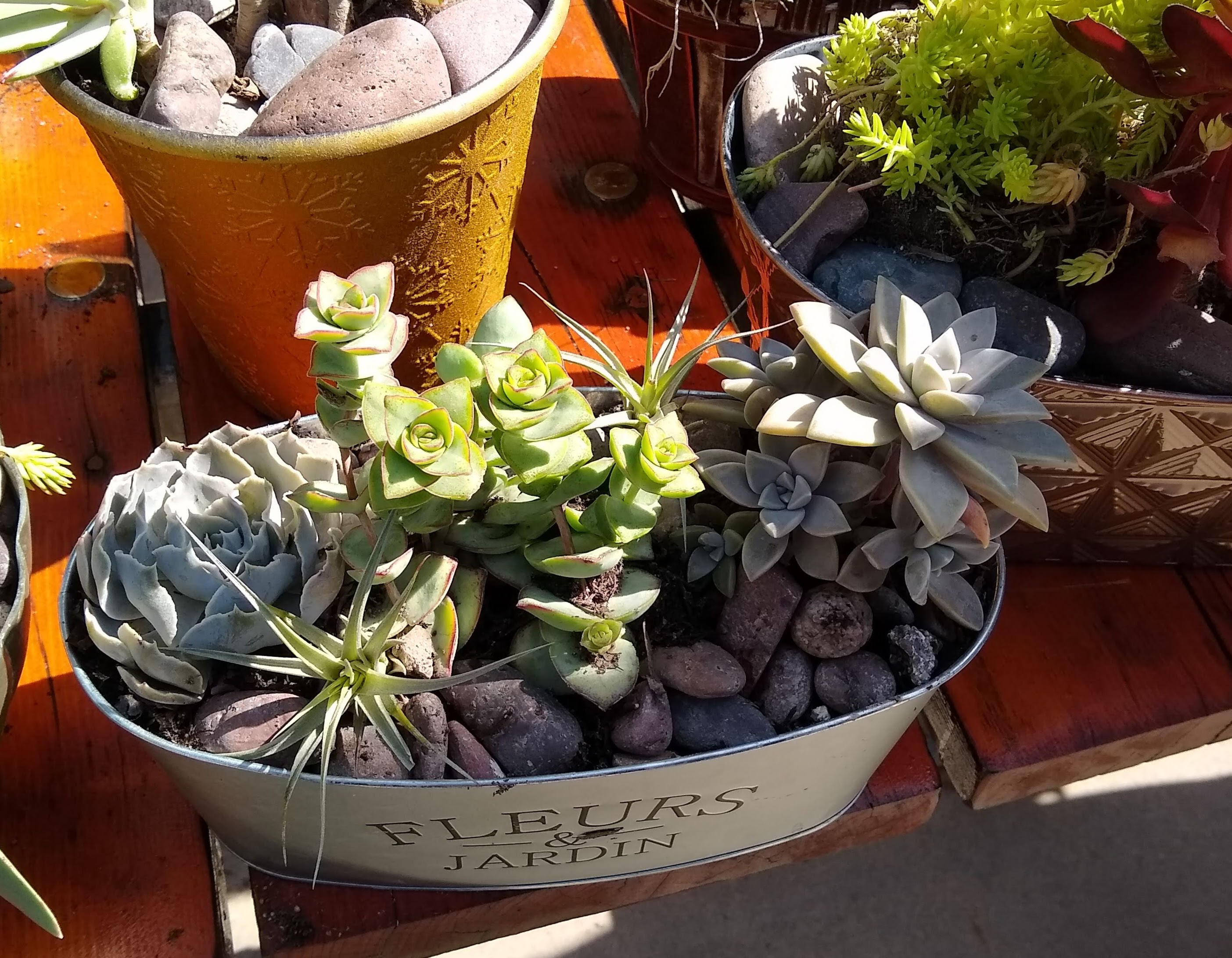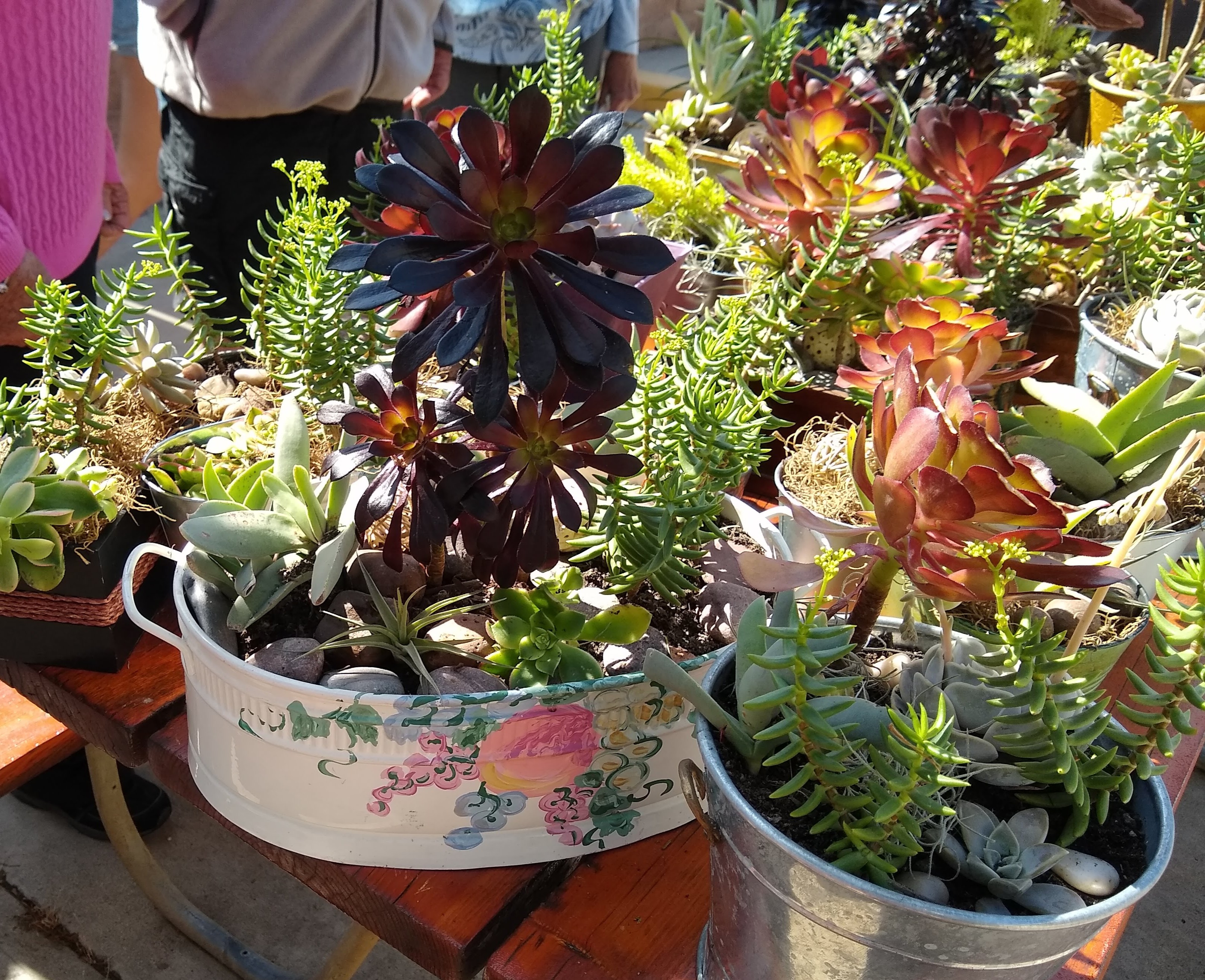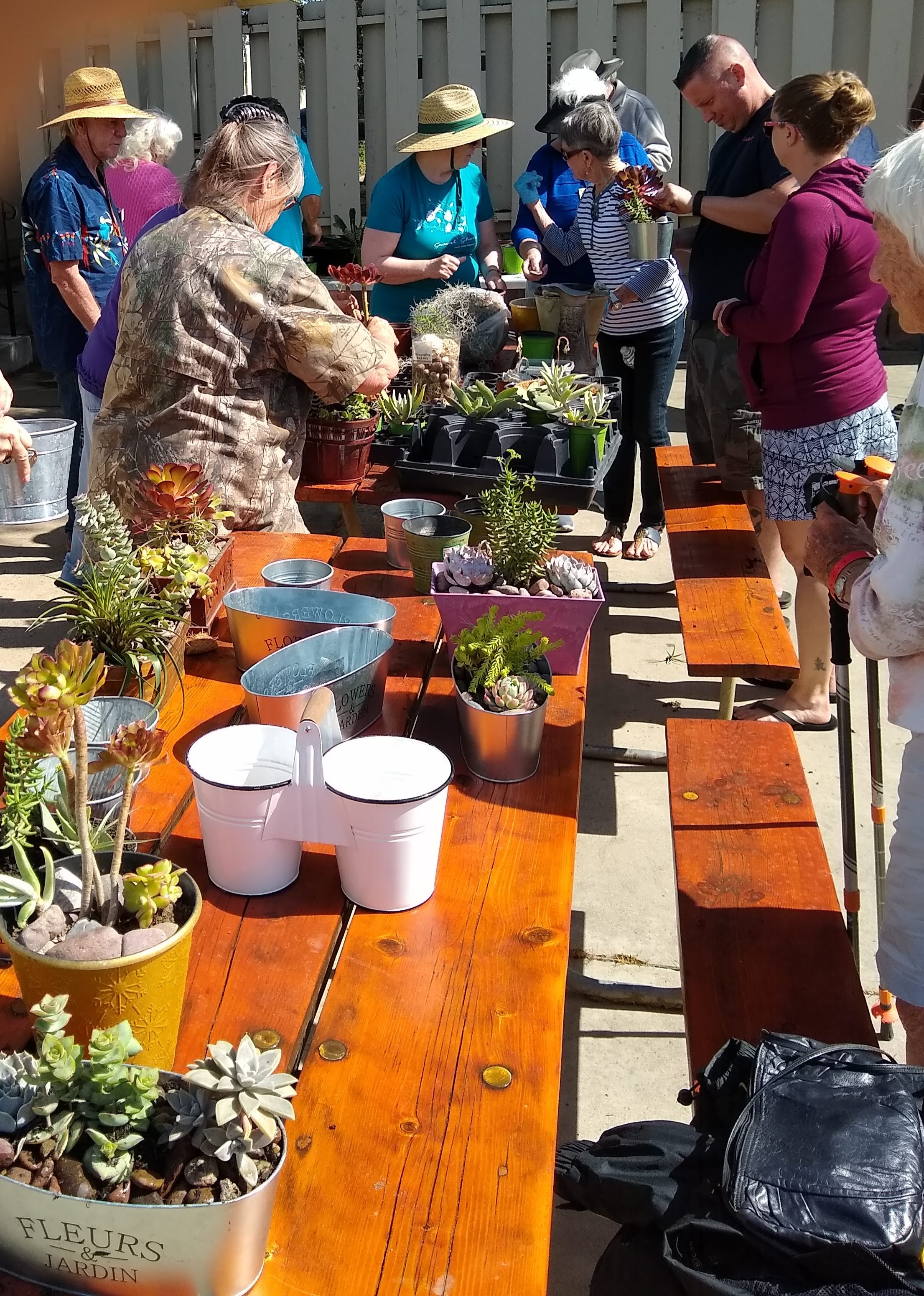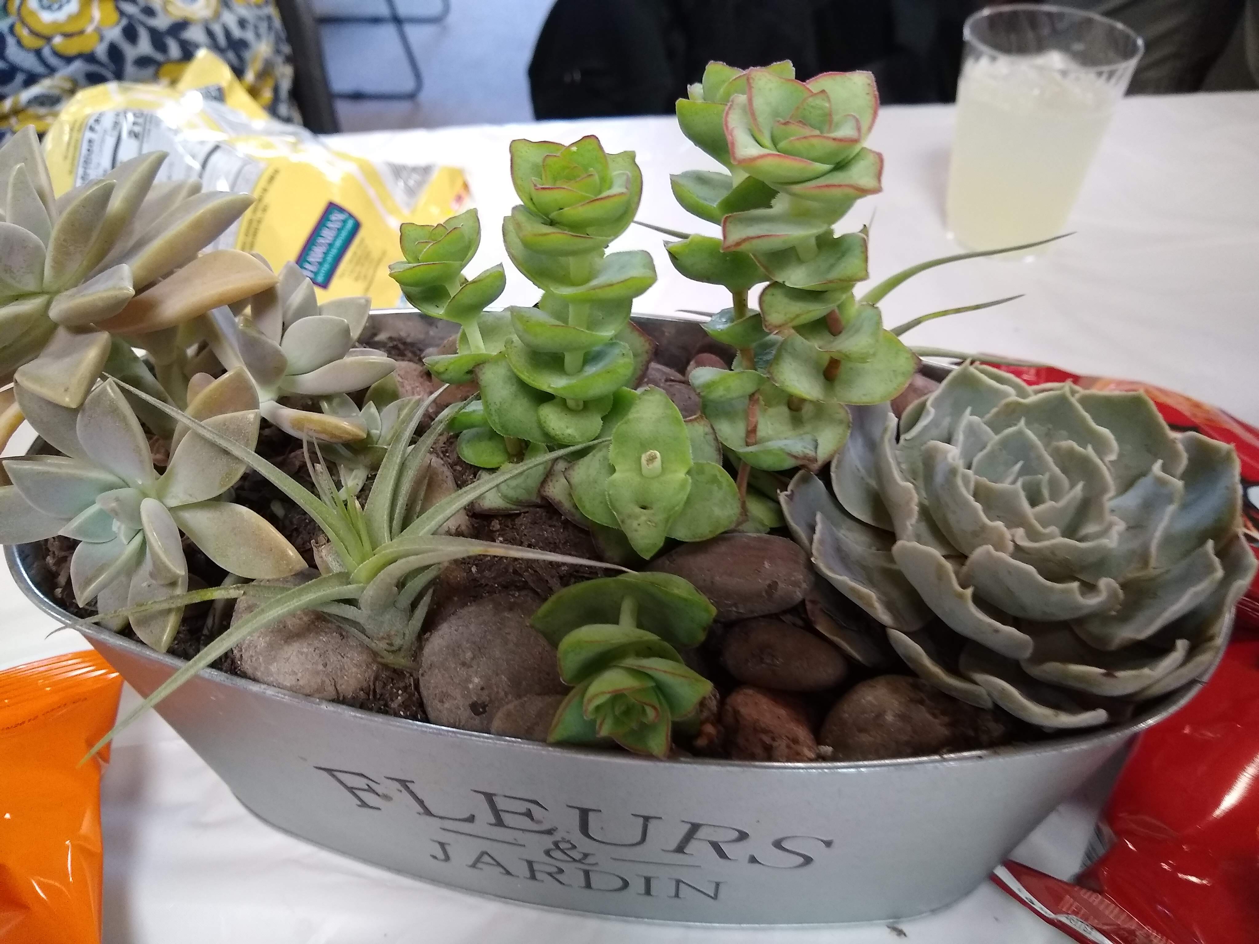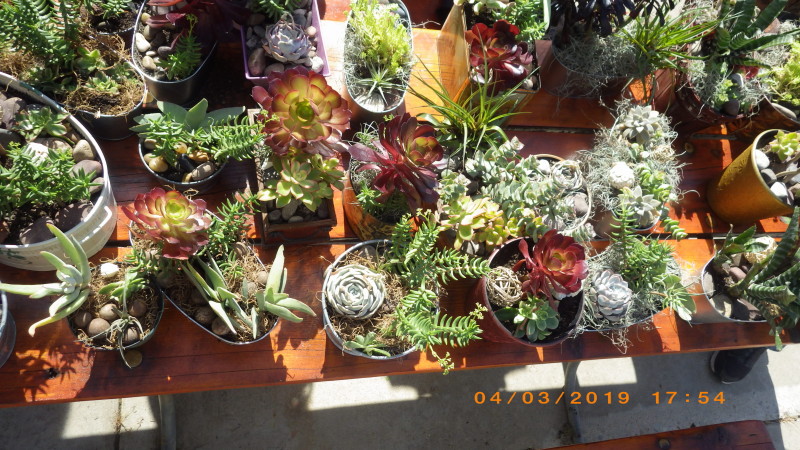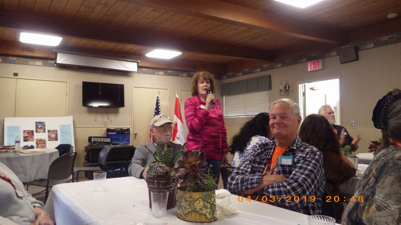 Wednesday, April 3rd was arrival day for most people. Dave deGraffenreid taught a short class where we made decorative center-pieces for our tables with random containers he and Donna got at various places, some potting soil and lots of succulent plants - mostly grown by Dave. These centerpieces will be raffled off on the last evening of the rally.