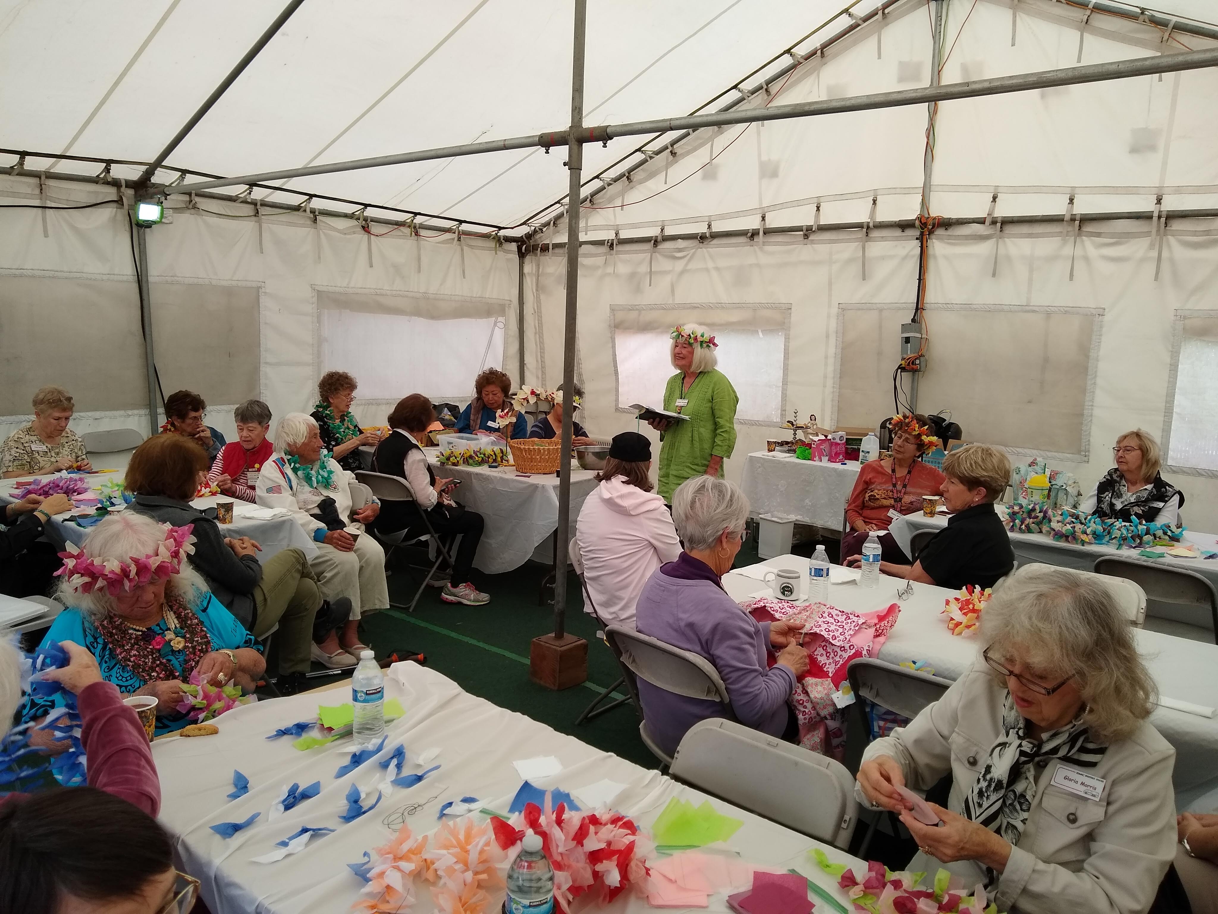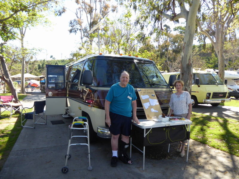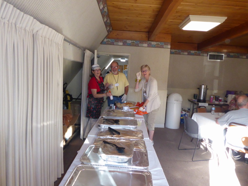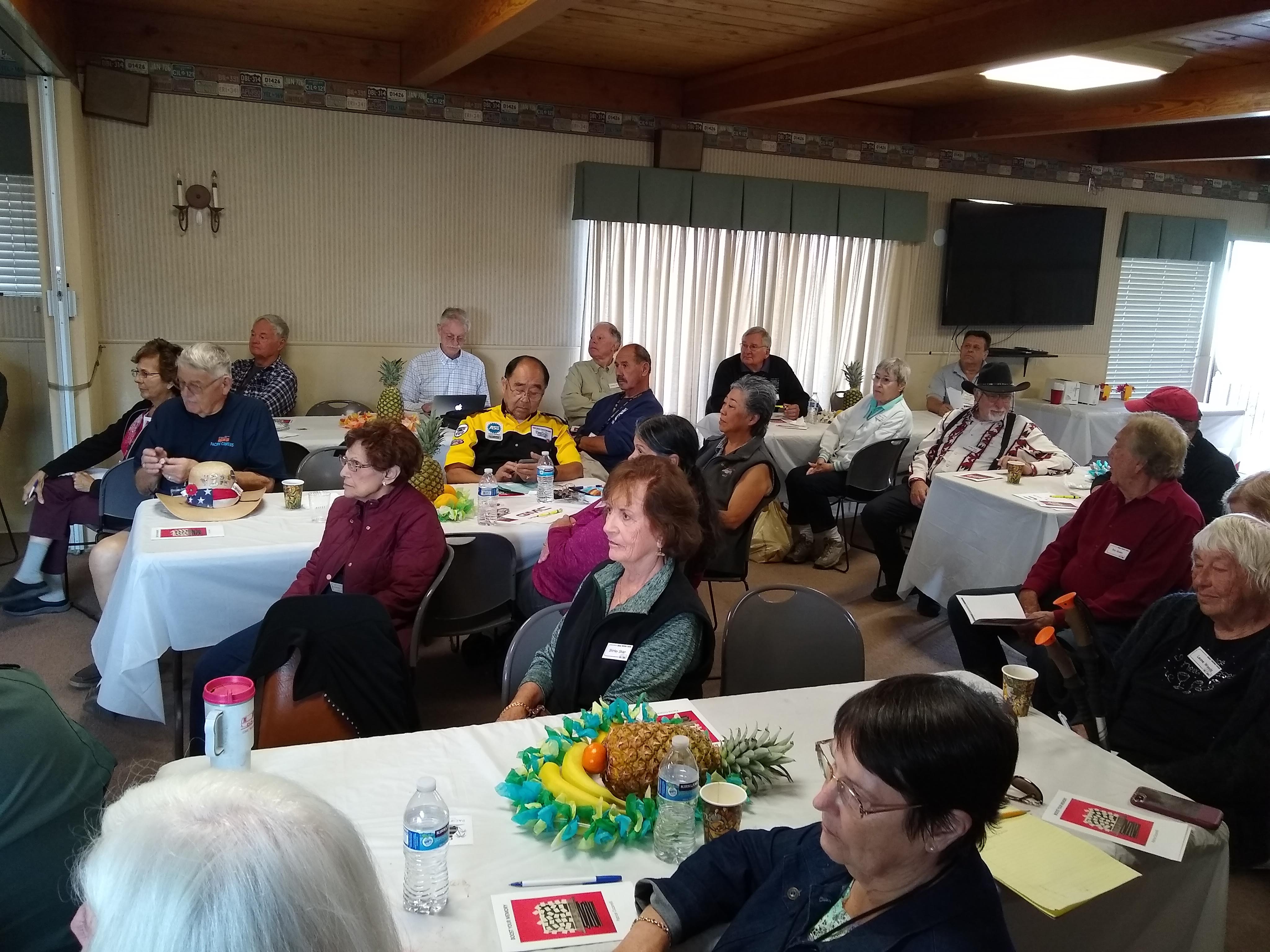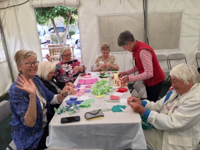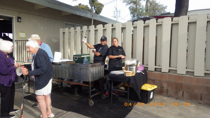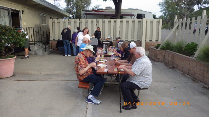 Sunday, April 7th we had some church, some (GM) history, and some more Hawaiian food. The ladies had an Easter Brunch with a presentation of California Pottery. Fran Fimbres donated 3 of her California Girls to raffle.