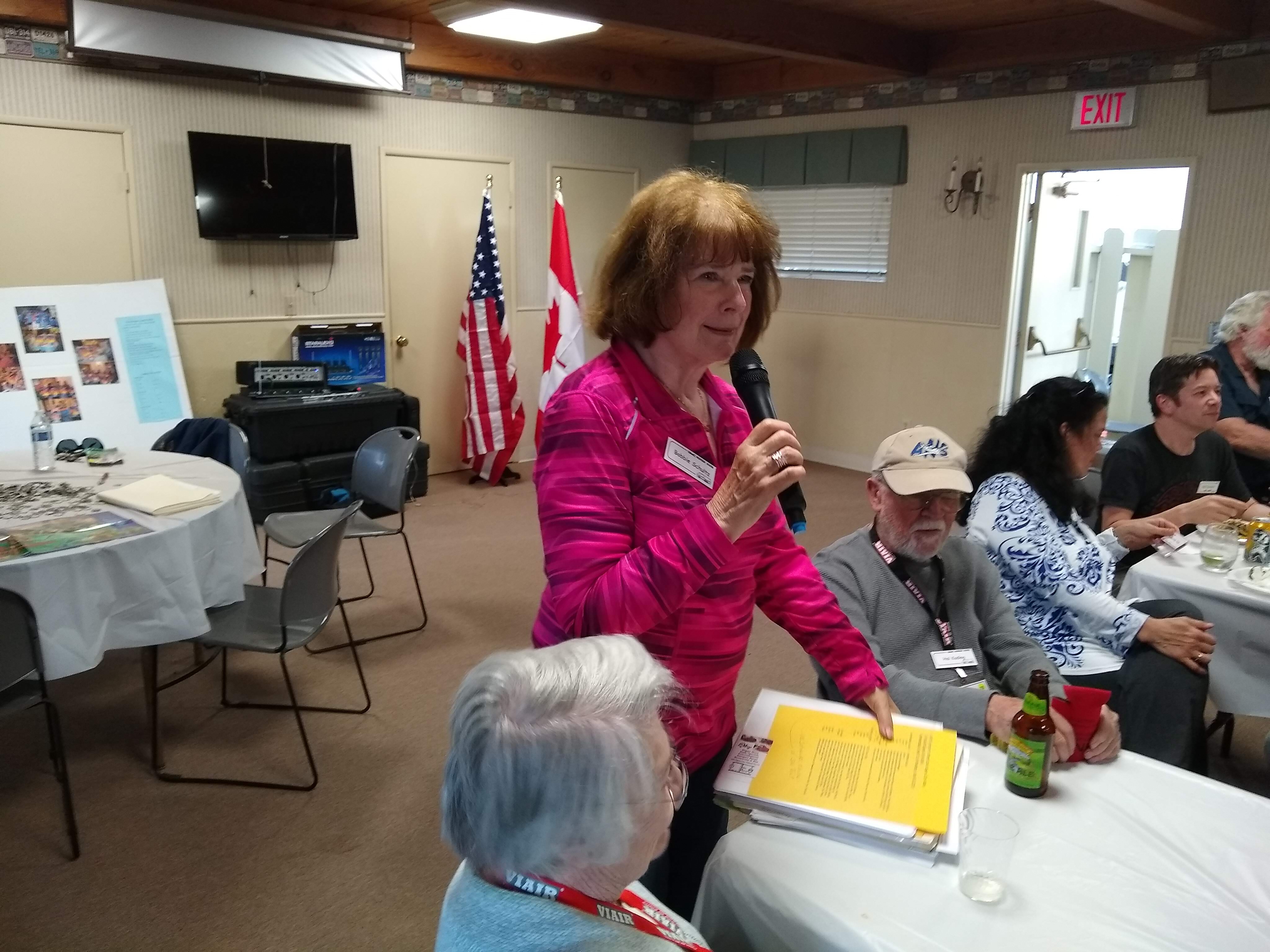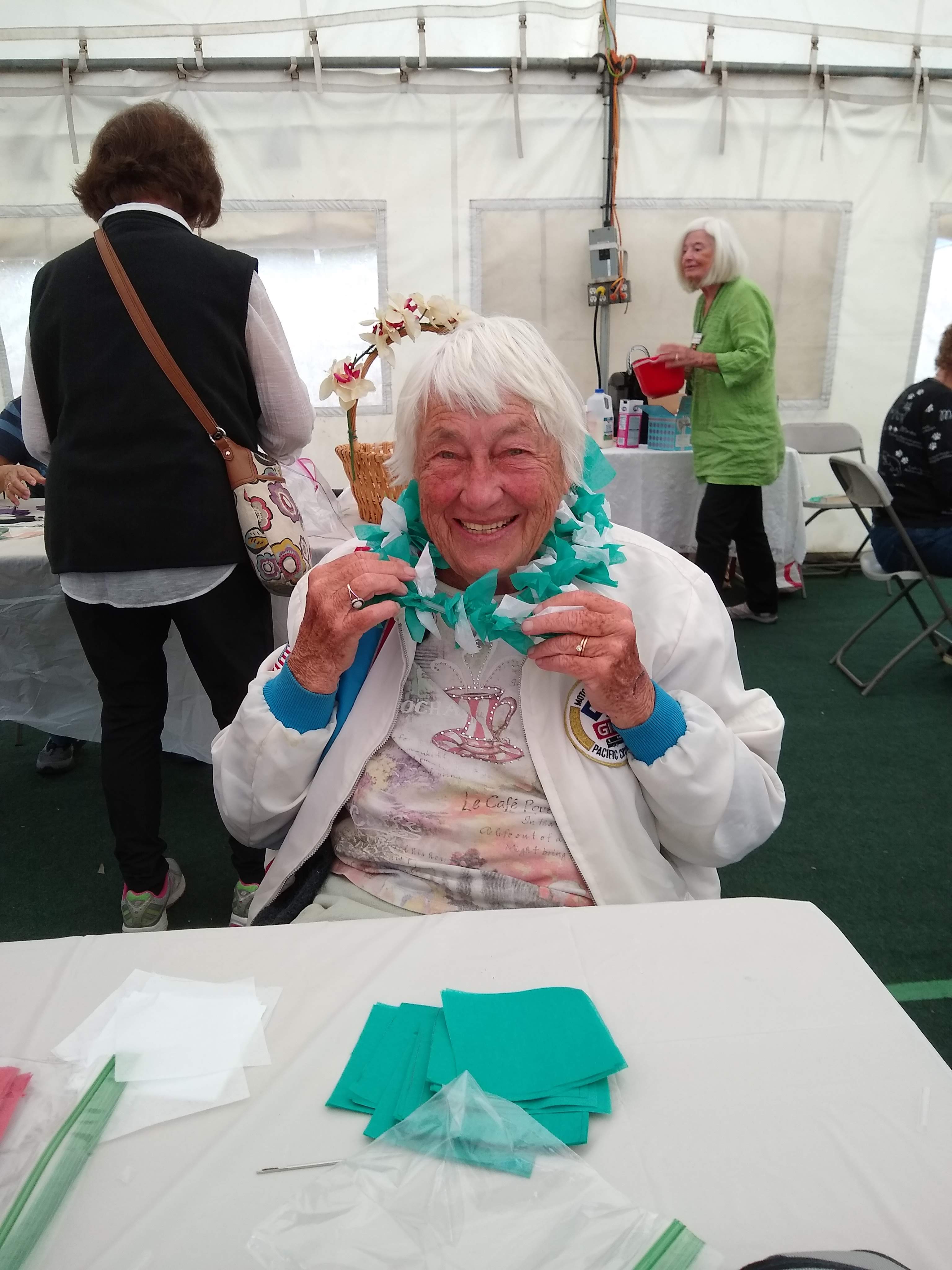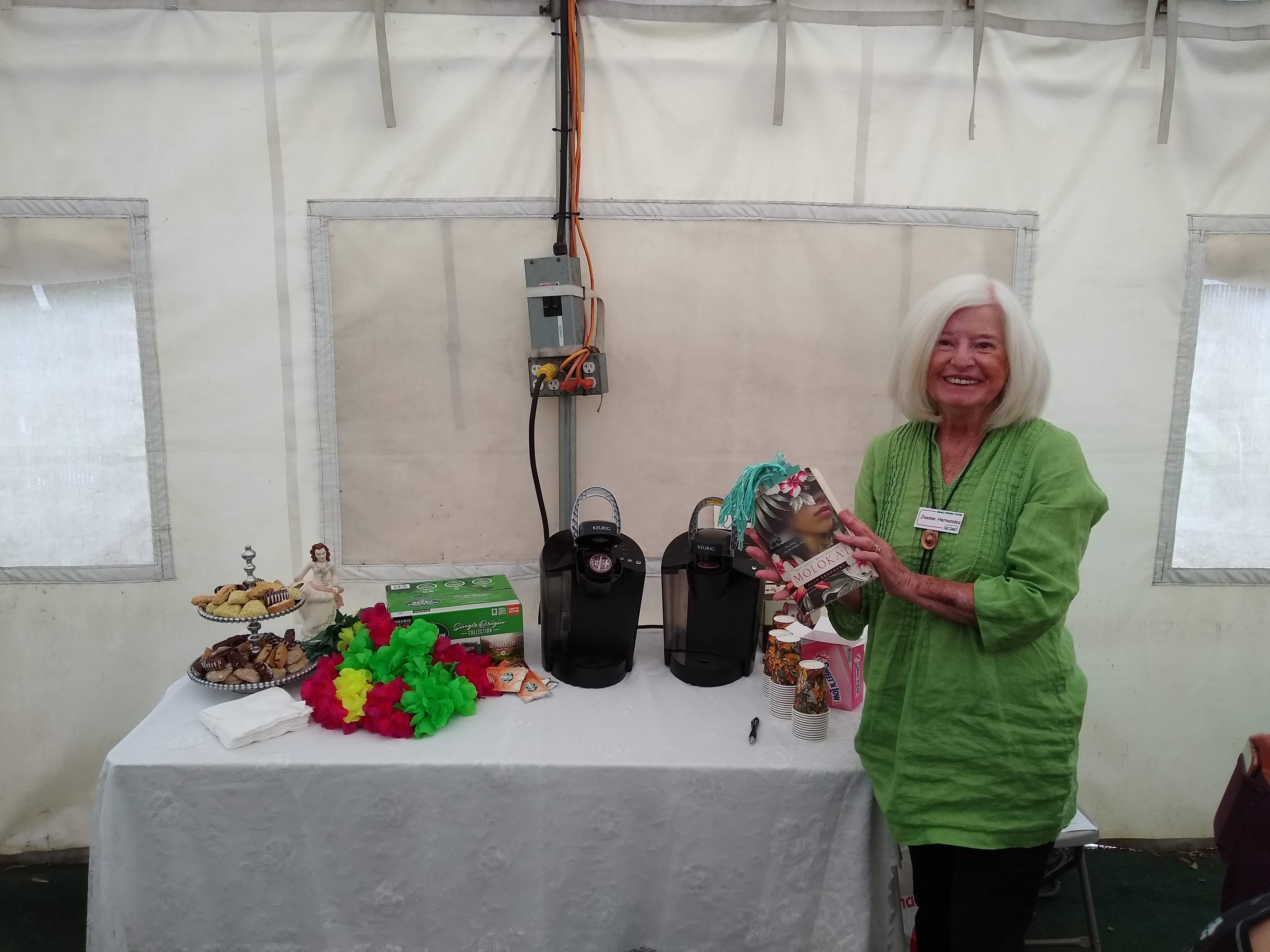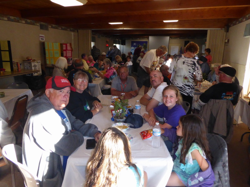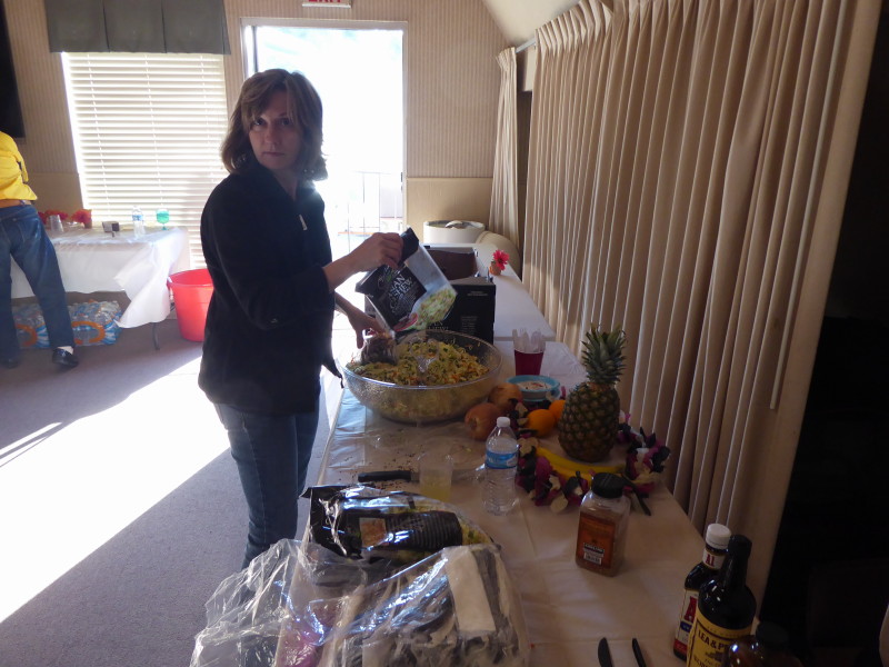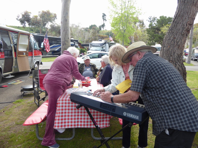 Sunday, April 7th we had some church, some (GM) history, and some more Hawaiian food. The ladies had an Easter Brunch with a presentation of California Pottery. Fran Fimbres donated 3 of her California Girls to raffle.