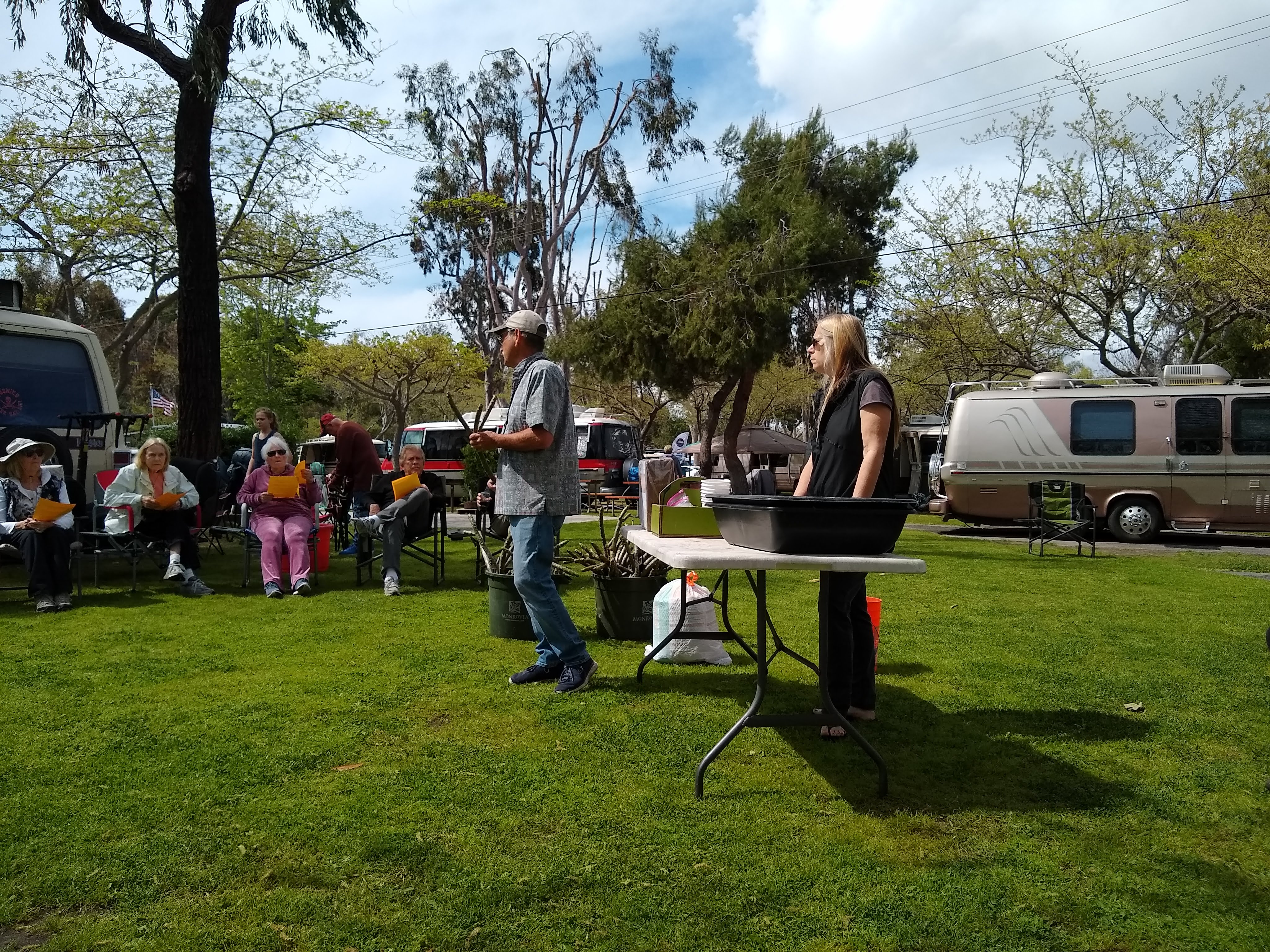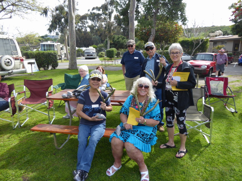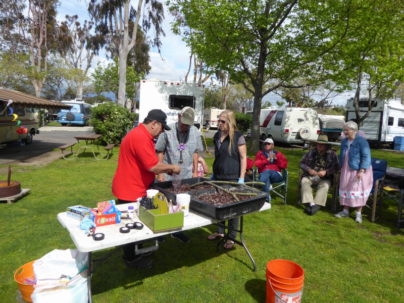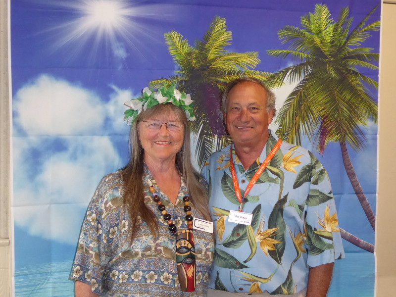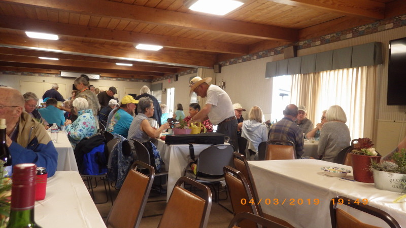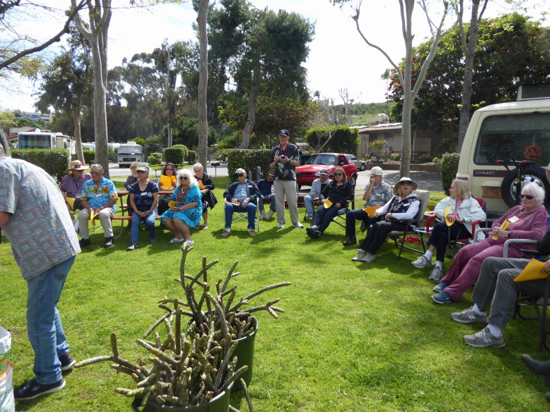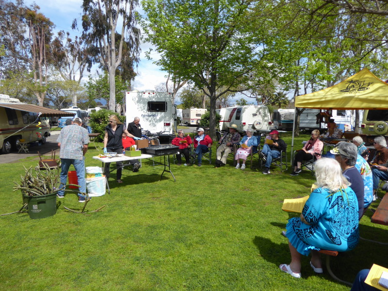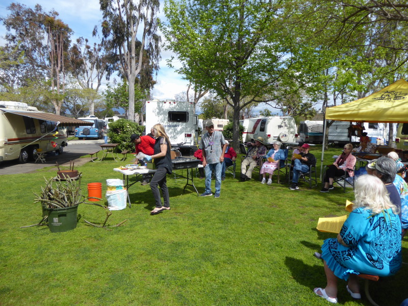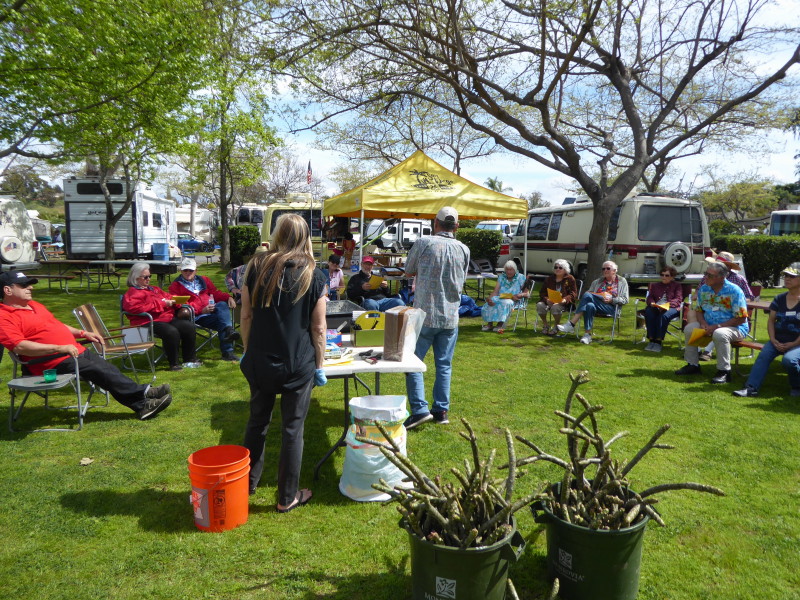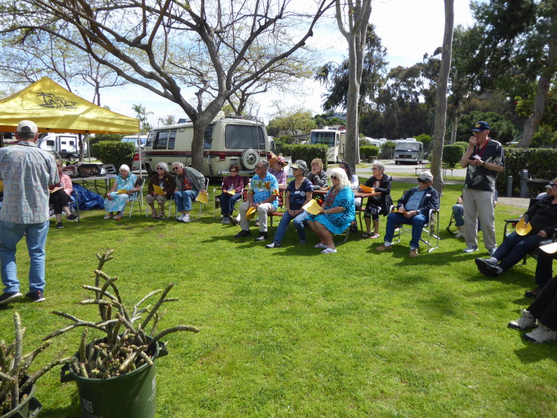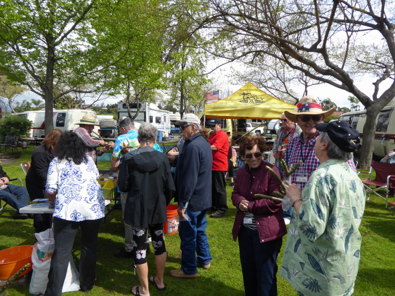 Friday, April 5th was Hawaiian day. We had a class on bag-rooting some plumeria trees, we had a swap meet, vendor visits, and a great Hawaiian dinner followed by the "Hawaiian Couples Game" hosted by Dave deGraffenreid. We finished the evening with Tom Ciccarelli’s big screen presentation of the movie “Desi & Lucy’s Long, Long Trailer and Grace K. doing the hula.