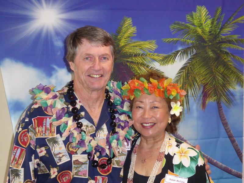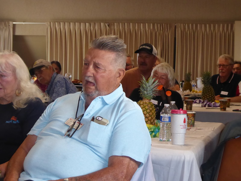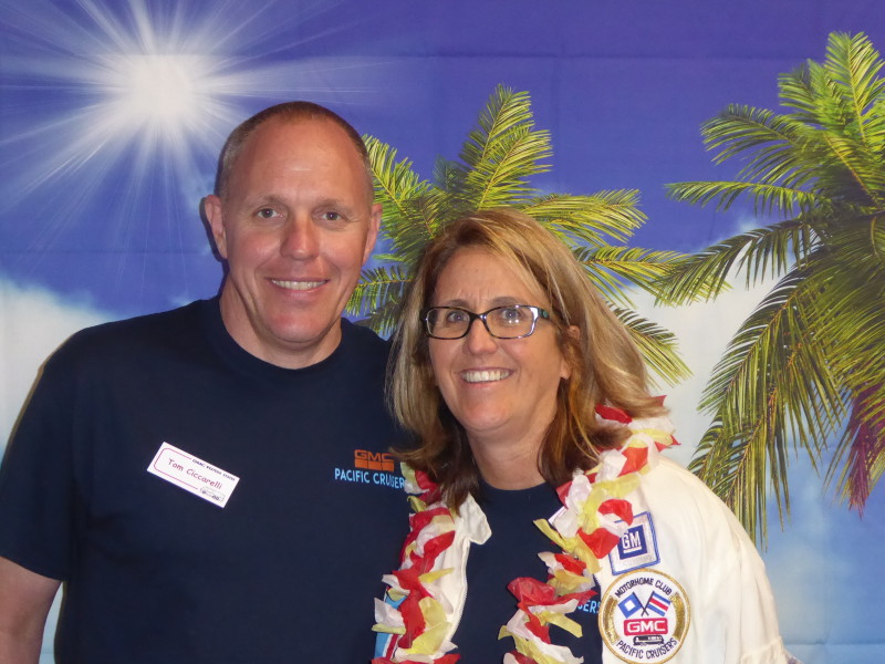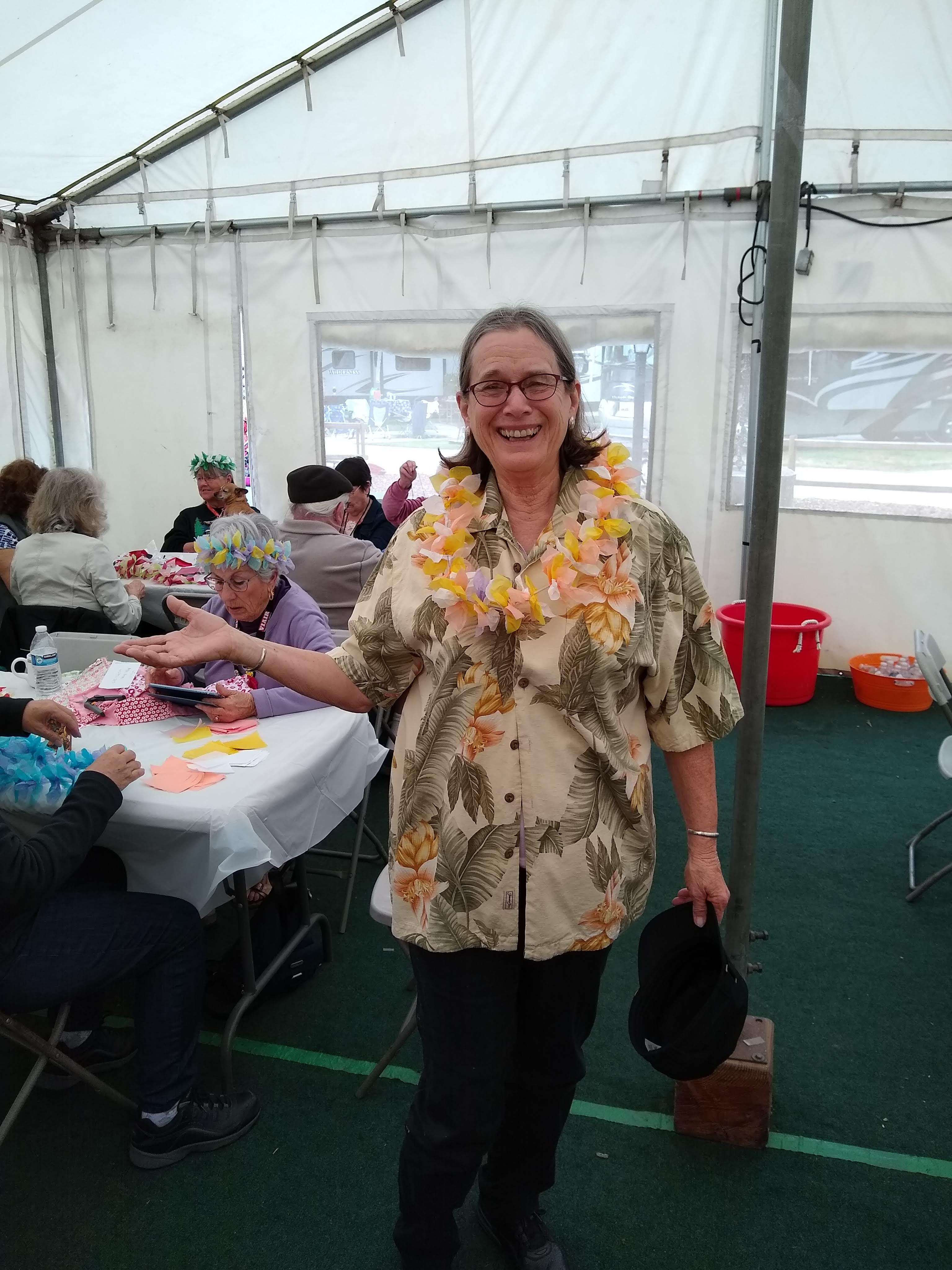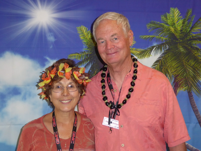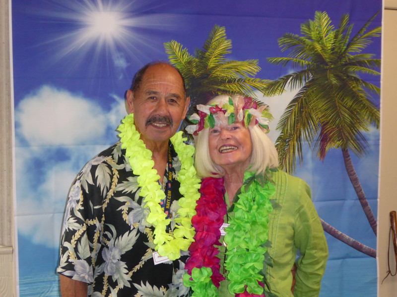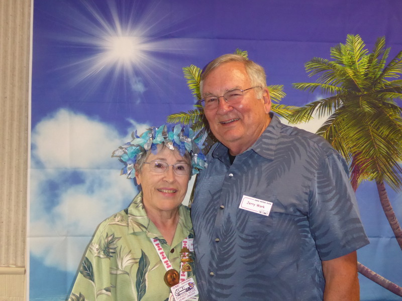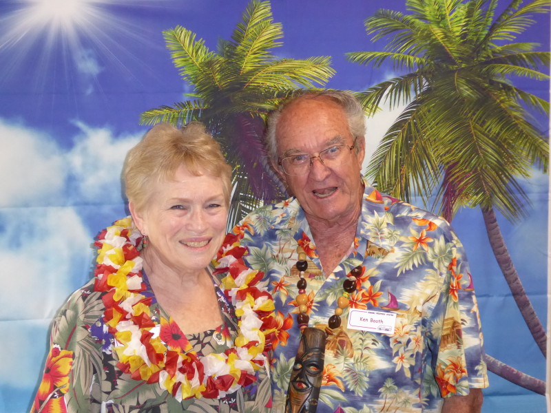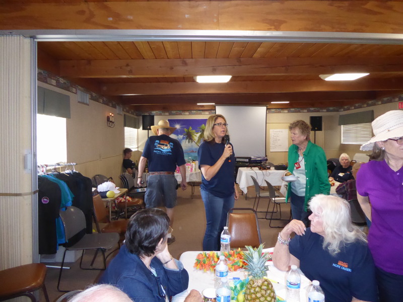 Friday, April 5th was Hawaiian day. We had a class on bag-rooting some plumeria trees, we had a swap meet, vendor visits, and a great Hawaiian dinner followed by the "Hawaiian Couples Game" hosted by Dave deGraffenreid. We finished the evening with Tom Ciccarelli’s big screen presentation of the movie “Desi & Lucy’s Long, Long Trailer and Grace K. doing the hula.
