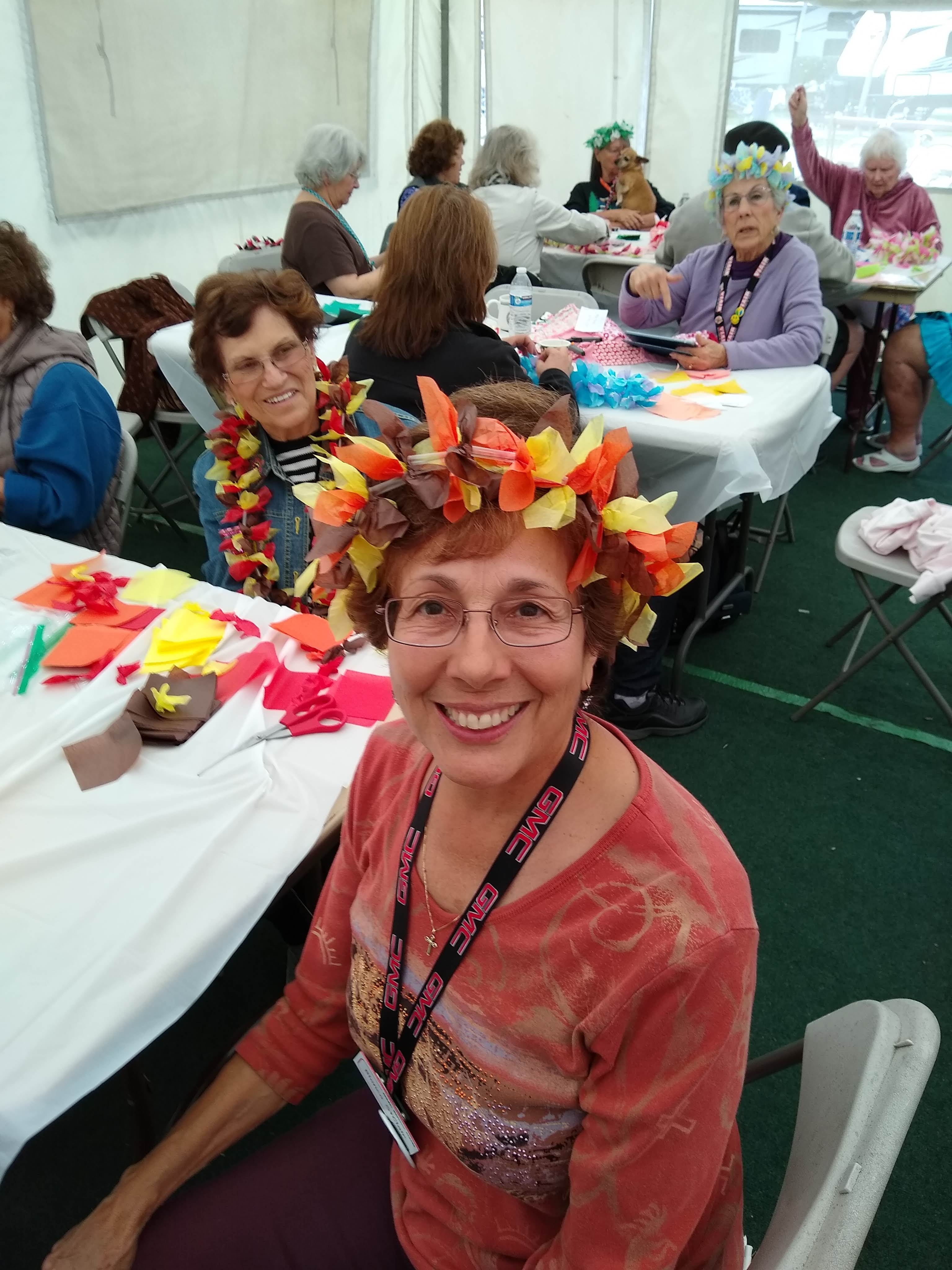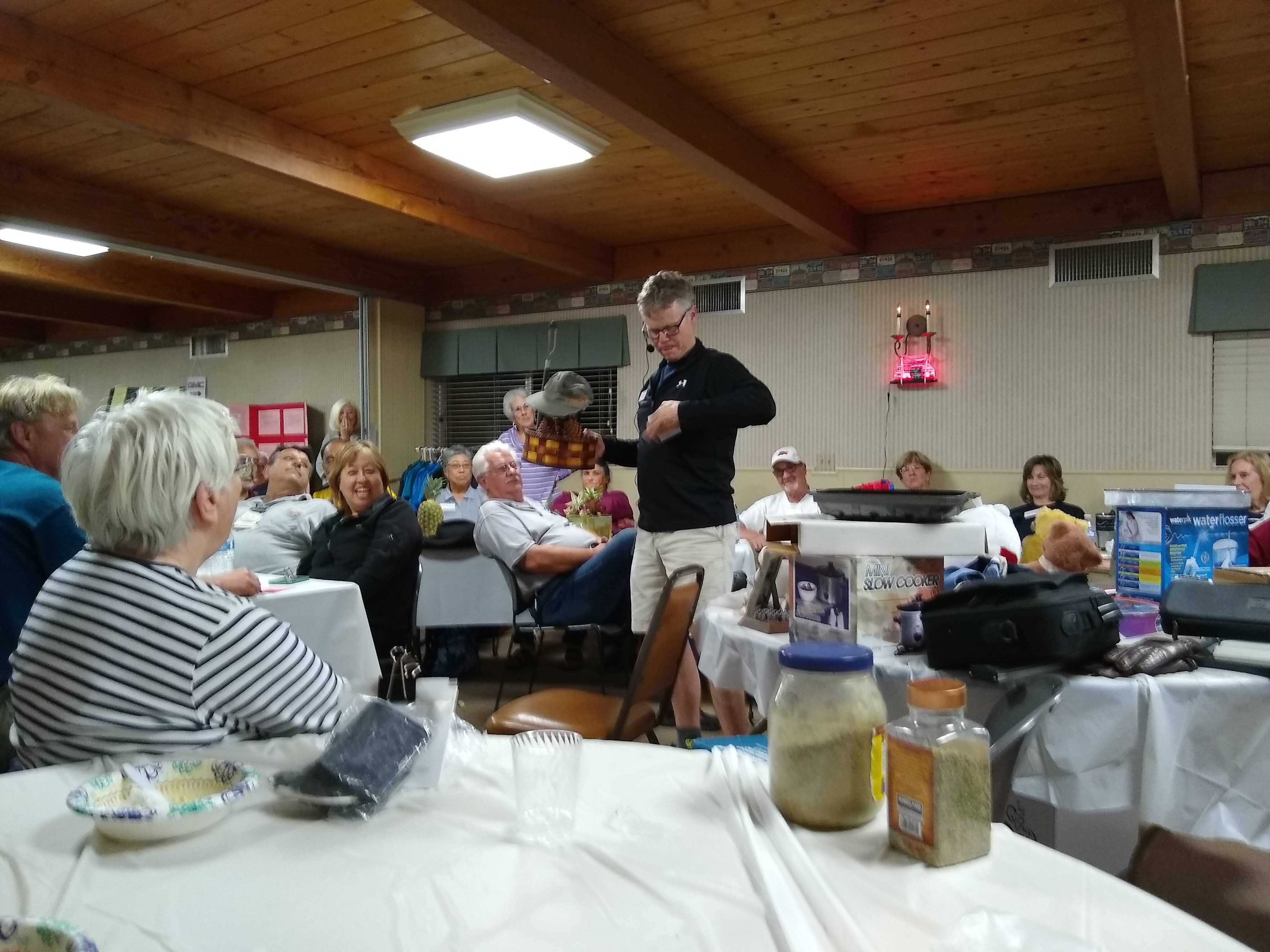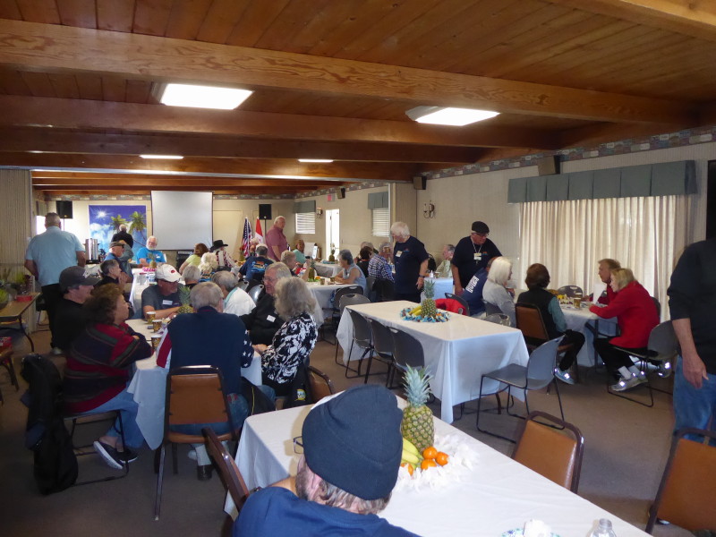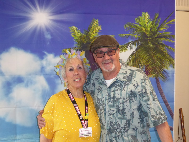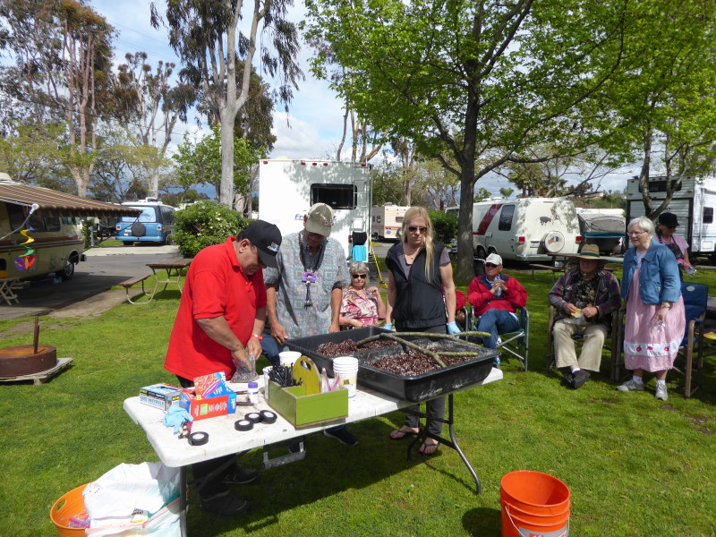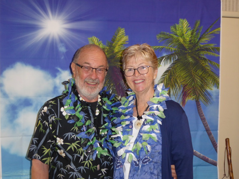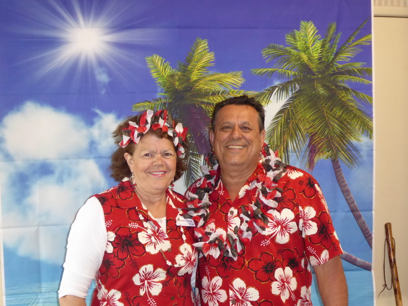 Friday, April 5th was Hawaiian day. We had a class on bag-rooting some plumeria trees, we had a swap meet, vendor visits, and a great Hawaiian dinner followed by the "Hawaiian Couples Game" hosted by Dave deGraffenreid. We finished the evening with Tom Ciccarelli’s big screen presentation of the movie “Desi & Lucy’s Long, Long Trailer and Grace K. doing the hula.