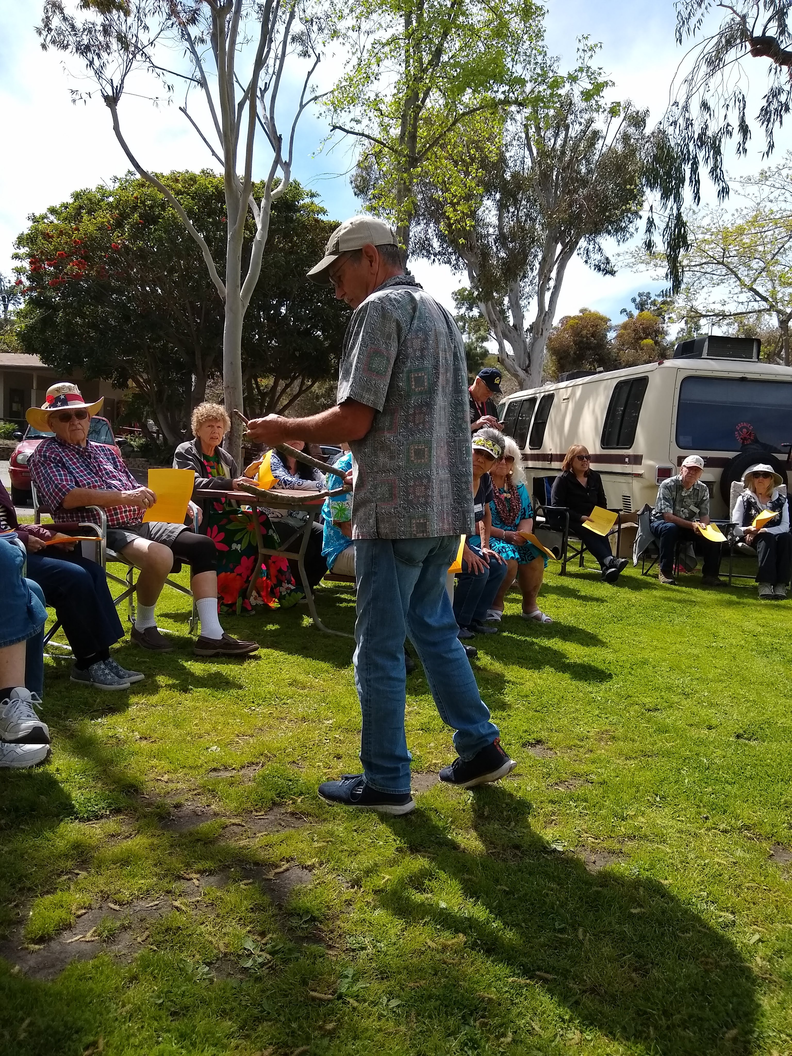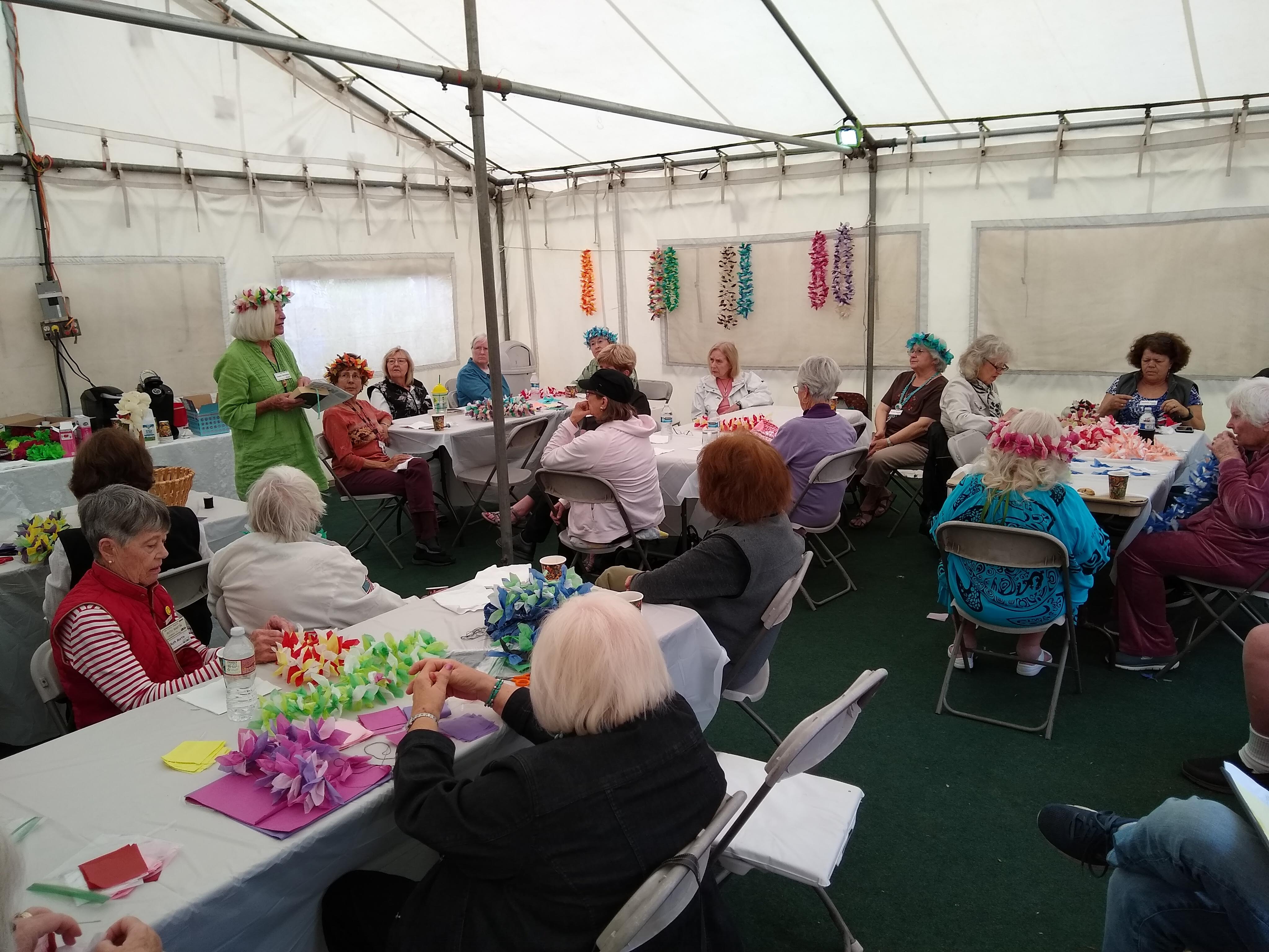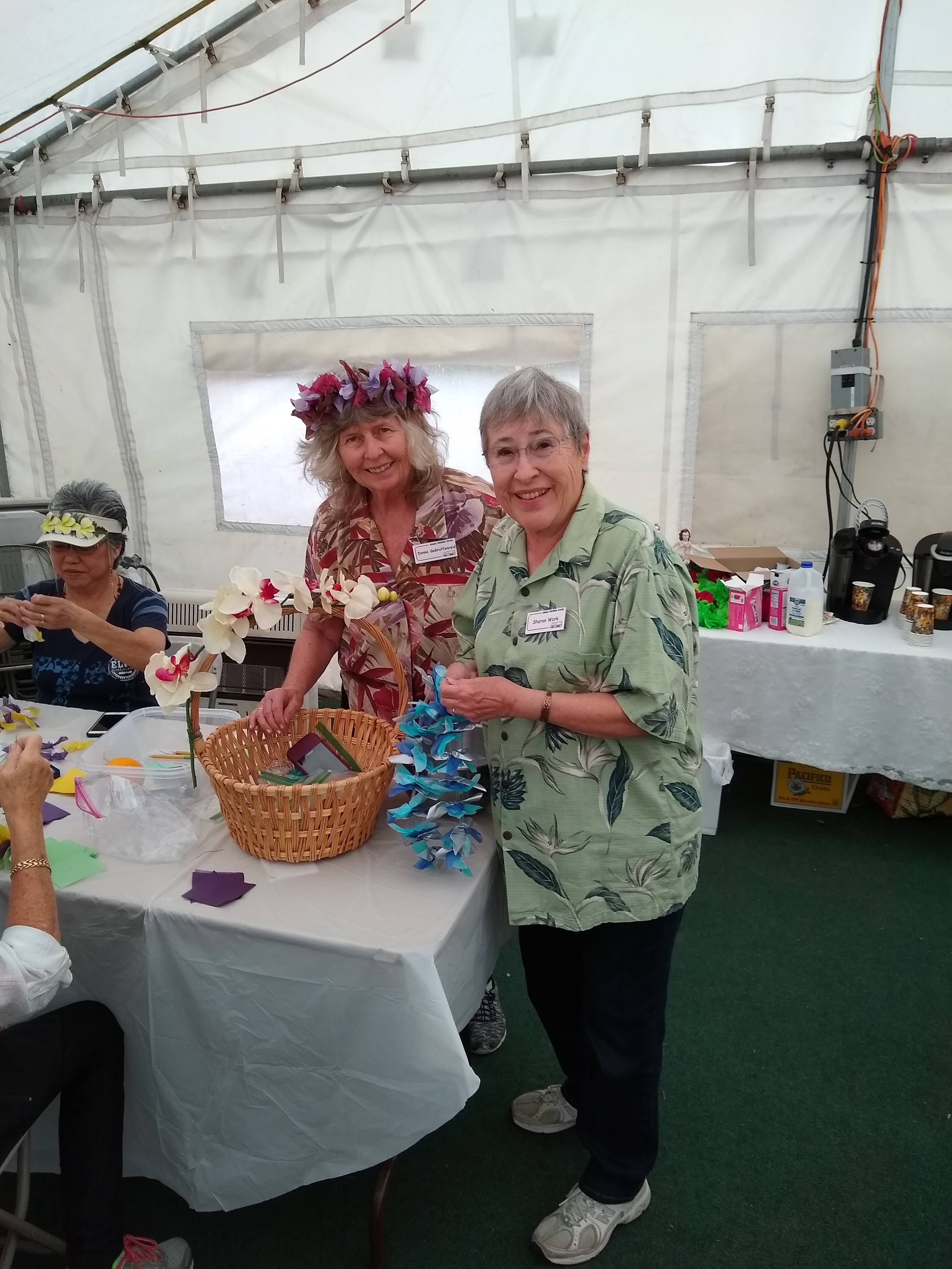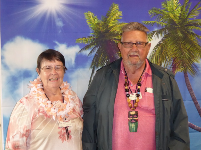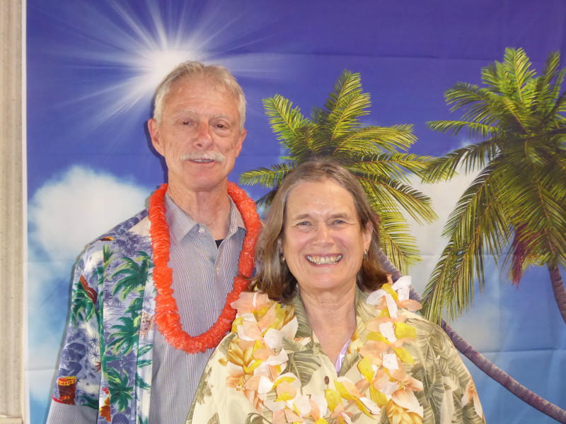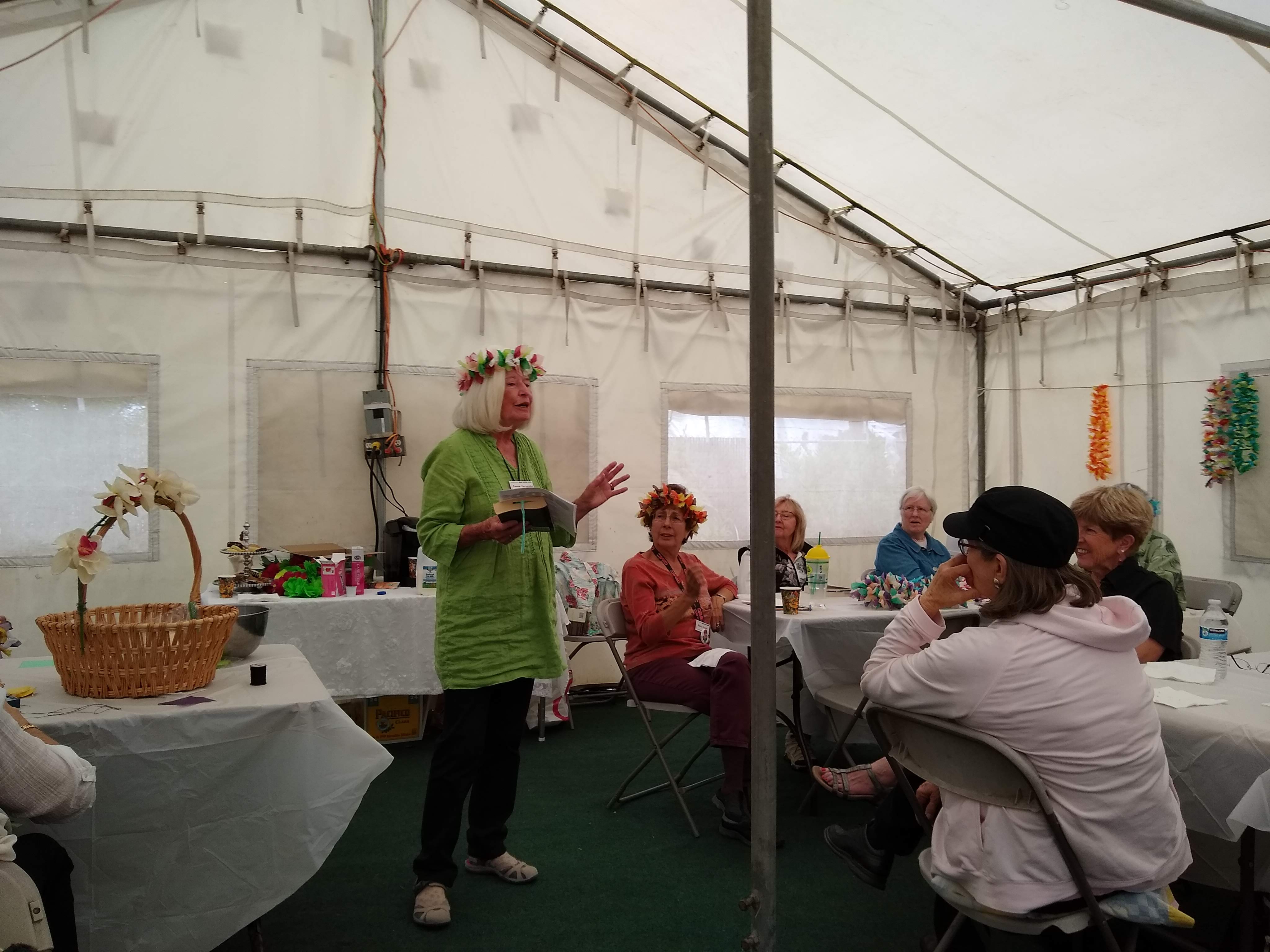 Friday, April 5th was Hawaiian day. We had a class on bag-rooting some plumeria trees, we had a swap meet, vendor visits, and a great Hawaiian dinner followed by the "Hawaiian Couples Game" hosted by Dave deGraffenreid. We finished the evening with Tom Ciccarelli’s big screen presentation of the movie “Desi & Lucy’s Long, Long Trailer and Grace K. doing the hula.