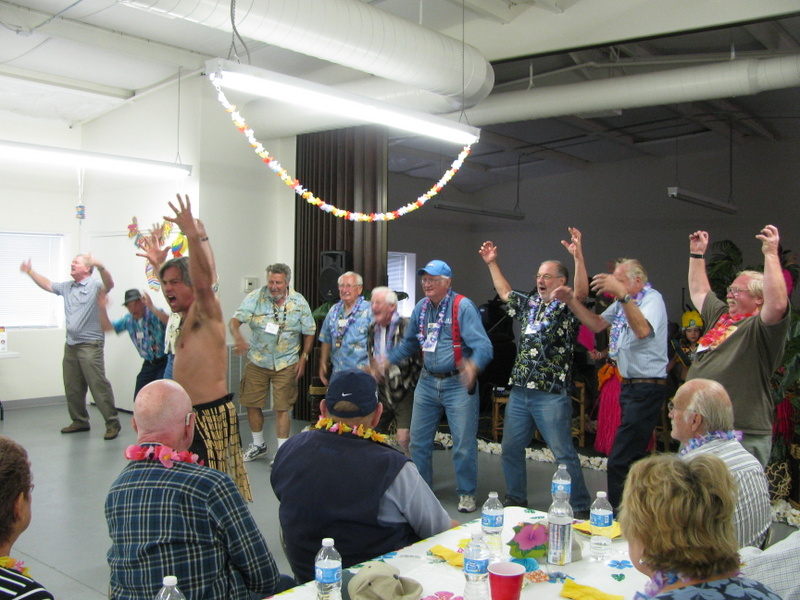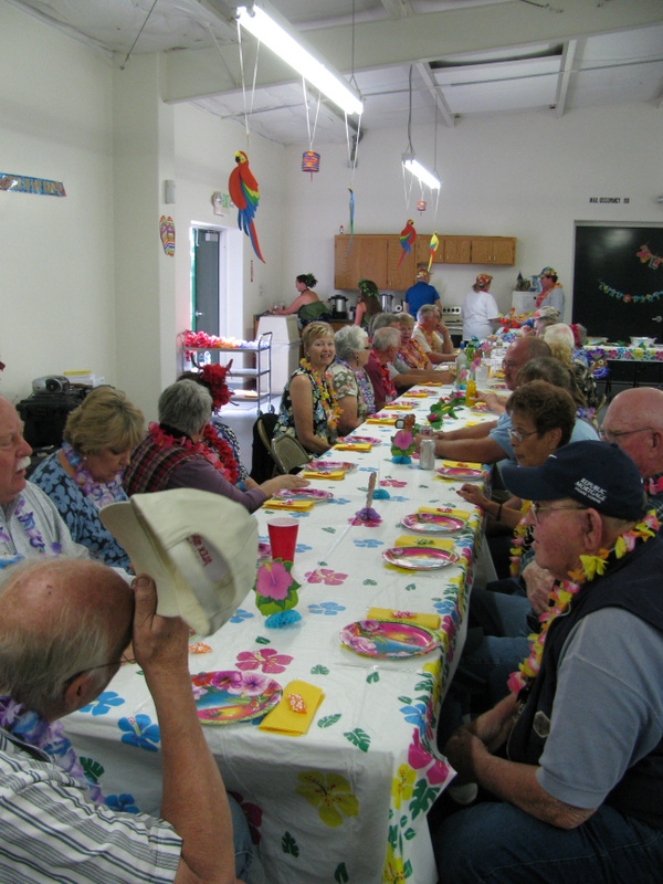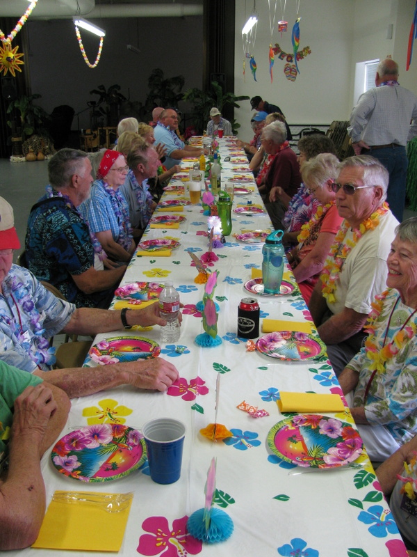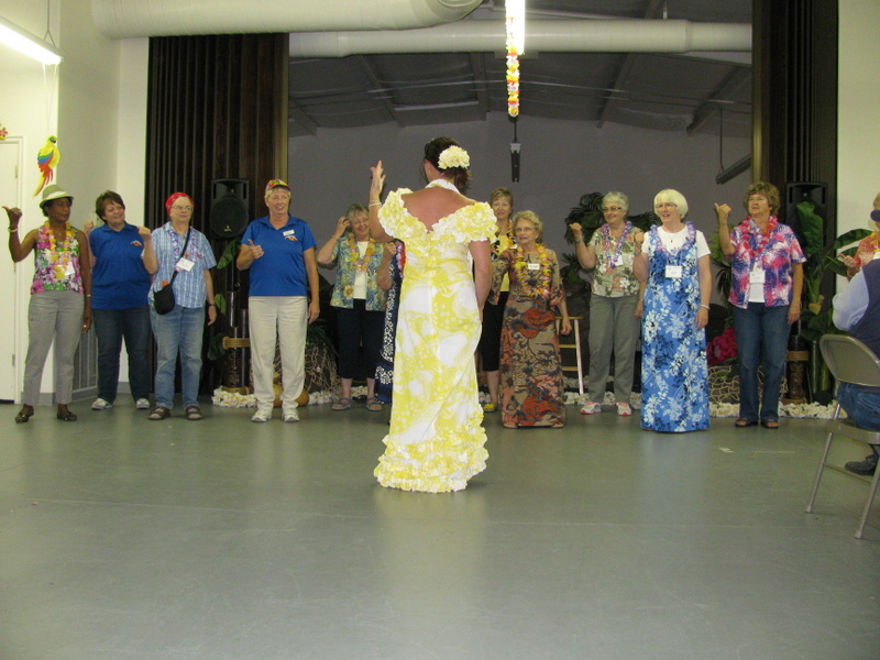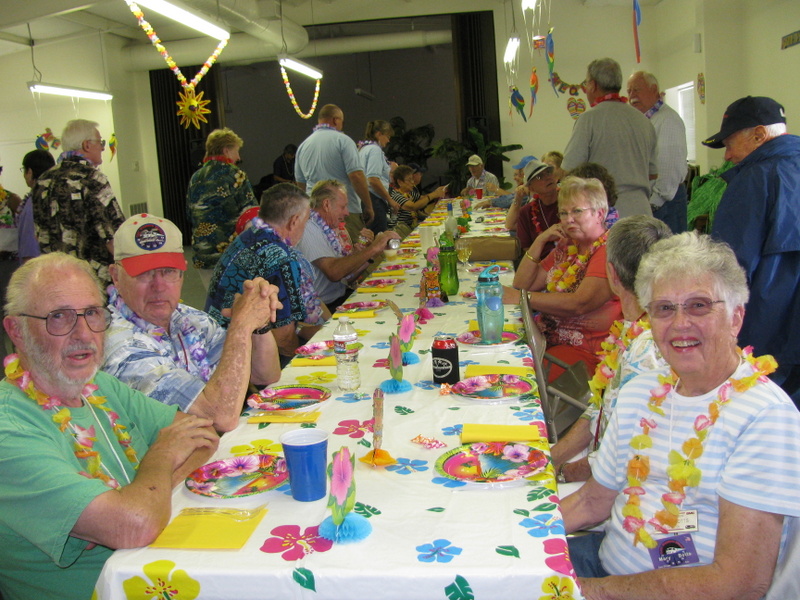 It is a small rally but it is still fun and there is lots of enthusiasm as usual. Tonight's meal and entertainment had a Hawaiian theme and a family act consisting of a Hawaiian Dad, a howley (mainlander) Mom, and a couple of really cute kids performed traditional Hawaiian songs and dances using authentic Hawaiian props. The food was good and there were lots of laughs.