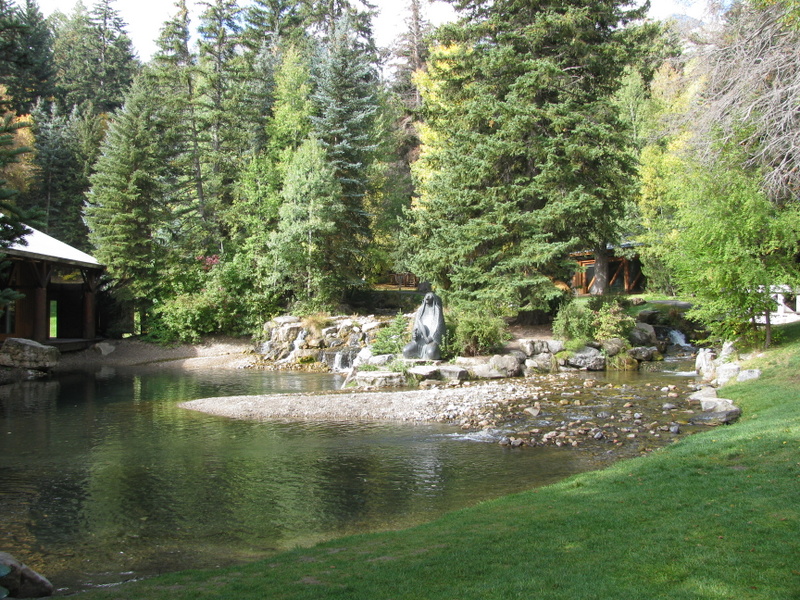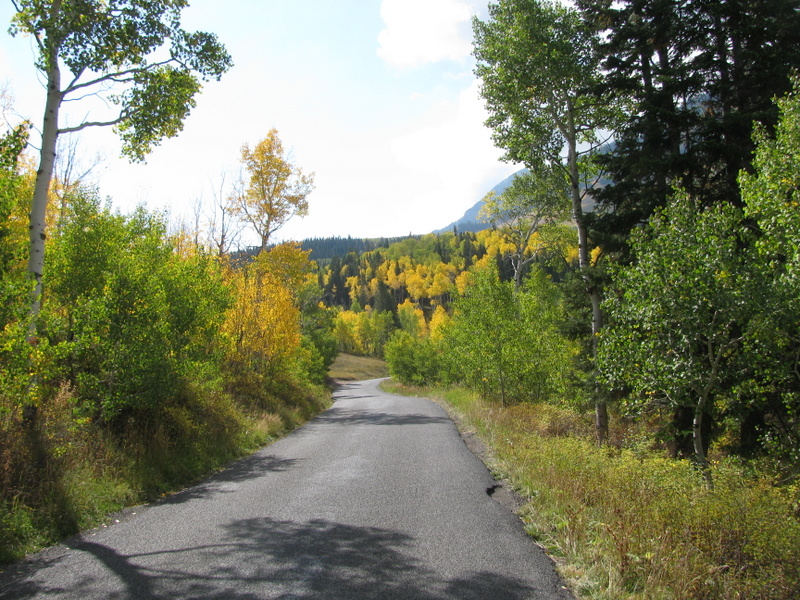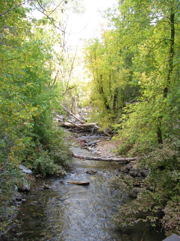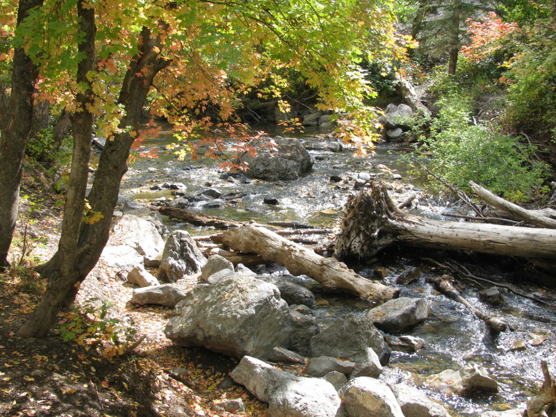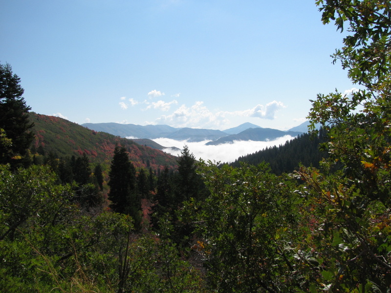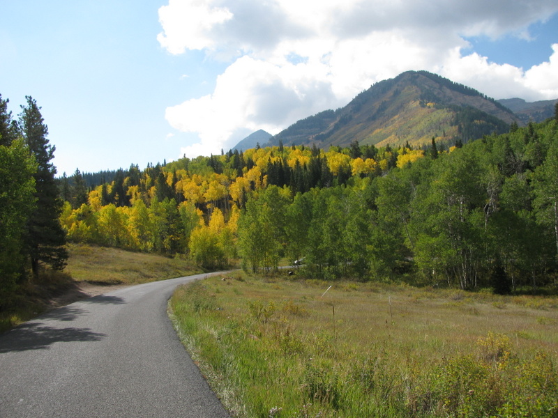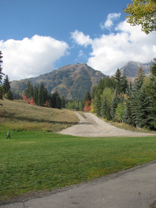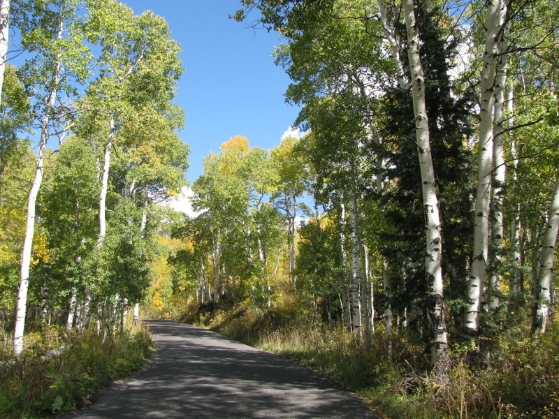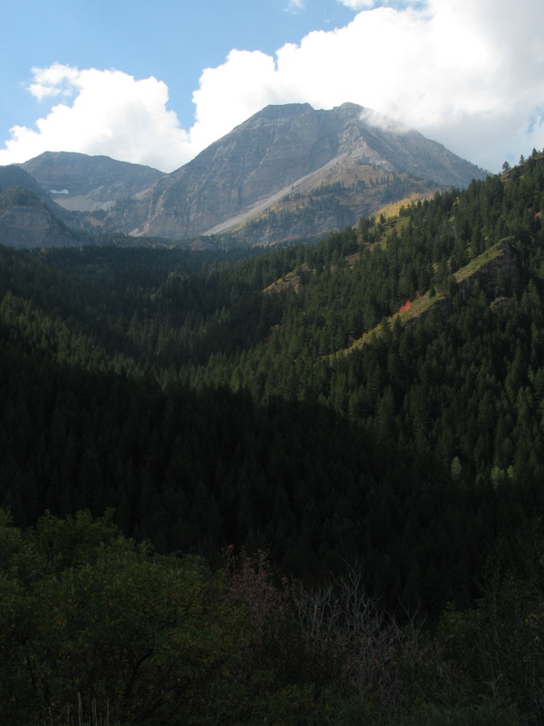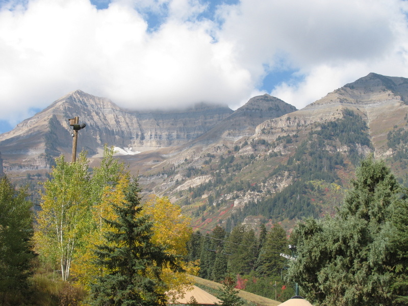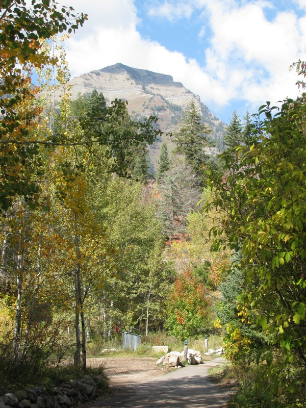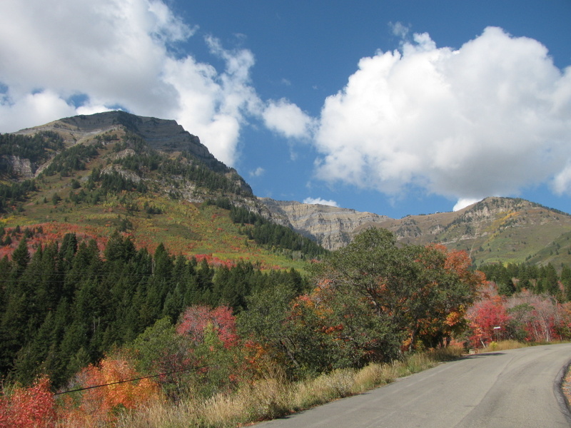 We had a free day today that Carol and I used to tour the area called the Alpine Scenic Loop (SR-92). It is a narrow and windy road that branches off of Provo Canyon above Provo and Springville. The Fall colors here are pretty different than the colors that I grew up with in the Northeast (Mass.). There, each leaf from the same tree turns a different color than its neighbor and there is a large variety of colors. Here, in the mountains of Utah, there are two types of tree that turn color. The aspen trees all turn the same shade of yellow and all scrub-oak trees turn the same shade of red. The red and yellow is mixed with the dark green of the evergreen trees and you have a spectacular display. We love it.