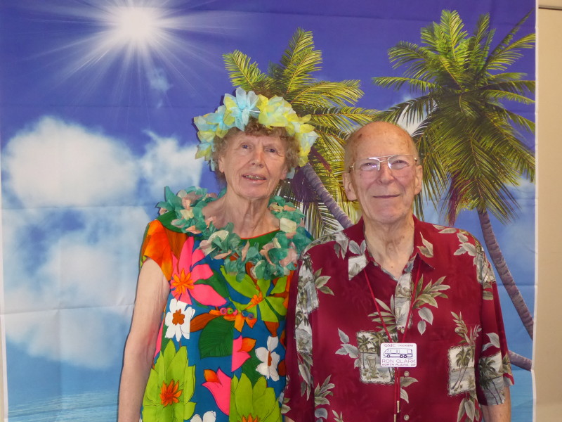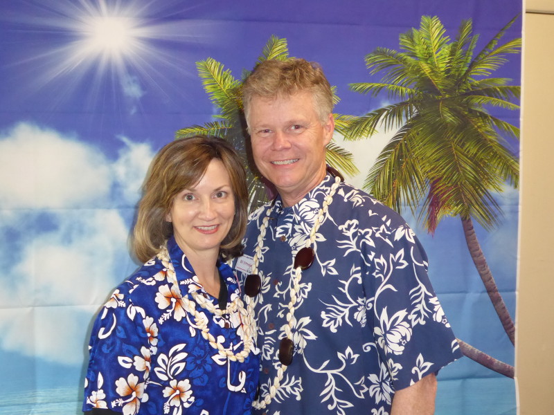 Friday, April 5th was Hawaiian day. We had a class on bag-rooting some plumeria trees, we had a swap meet, vendor visits, and a great Hawaiian dinner followed by the "Hawaiian Couples Game" hosted by Dave deGraffenreid. We finished the evening with Tom Ciccarelli’s big screen presentation of the movie “Desi & Lucy’s Long, Long Trailer and Grace K. doing the hula.