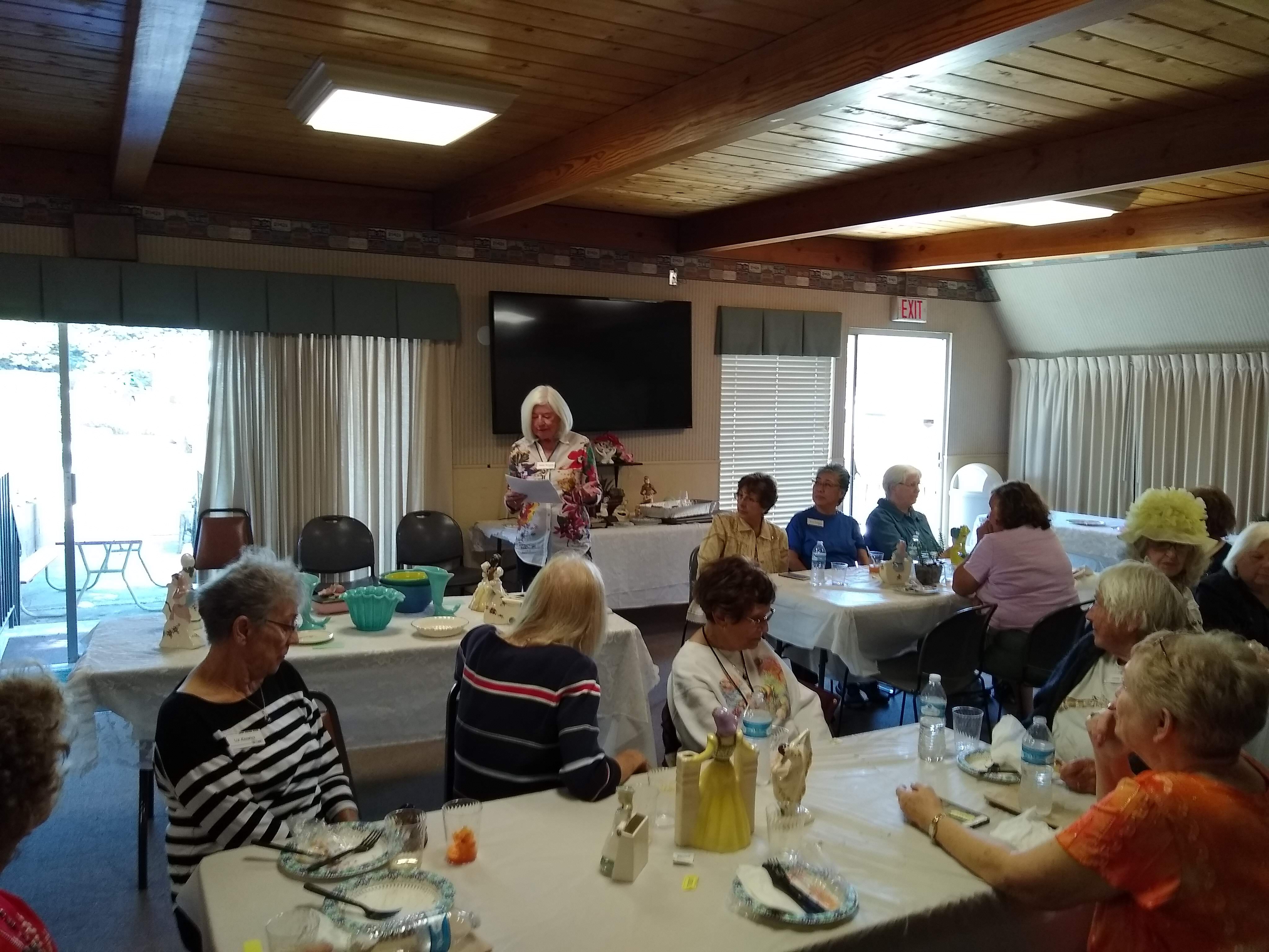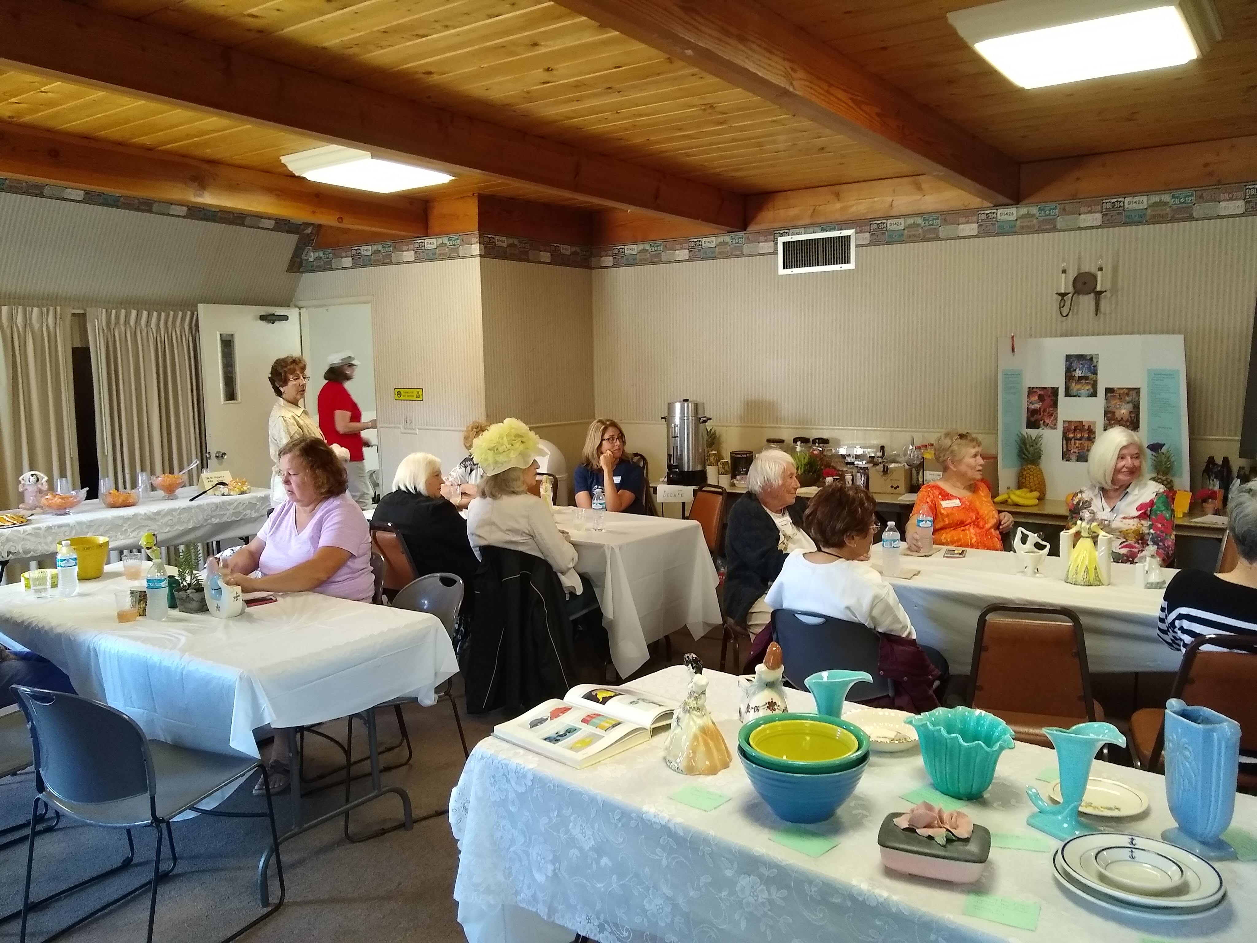Sunday, April 7th we had some church, some (GM) history, and some more Hawaiian food. The ladies had an Easter Brunch with a presentation of California Pottery. Fran Fimbres donated 3 of her California Girls to raffle.